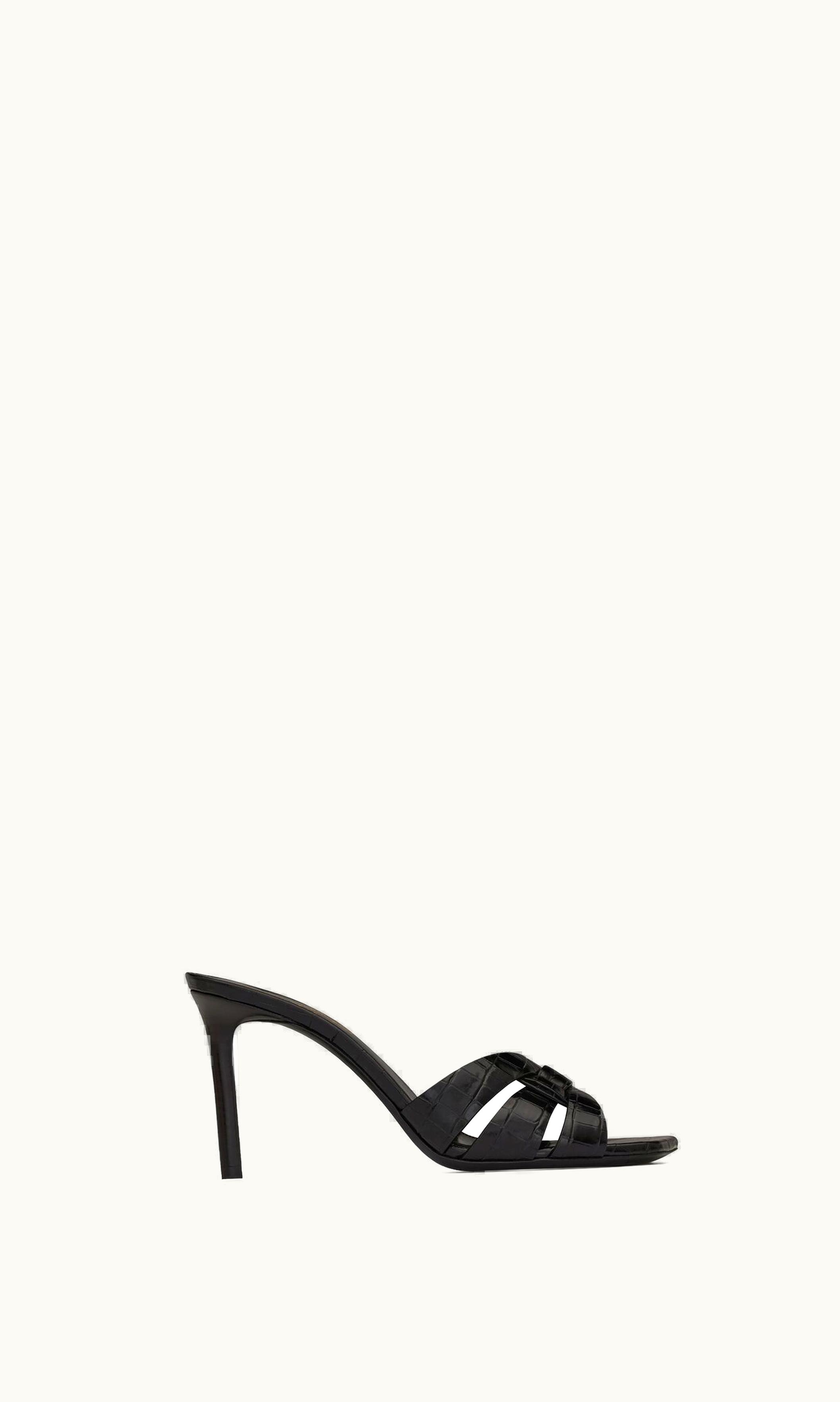 Saint Laurent Tribute Mules In Crocodile-Embossed Shiny Leather | GLINT
