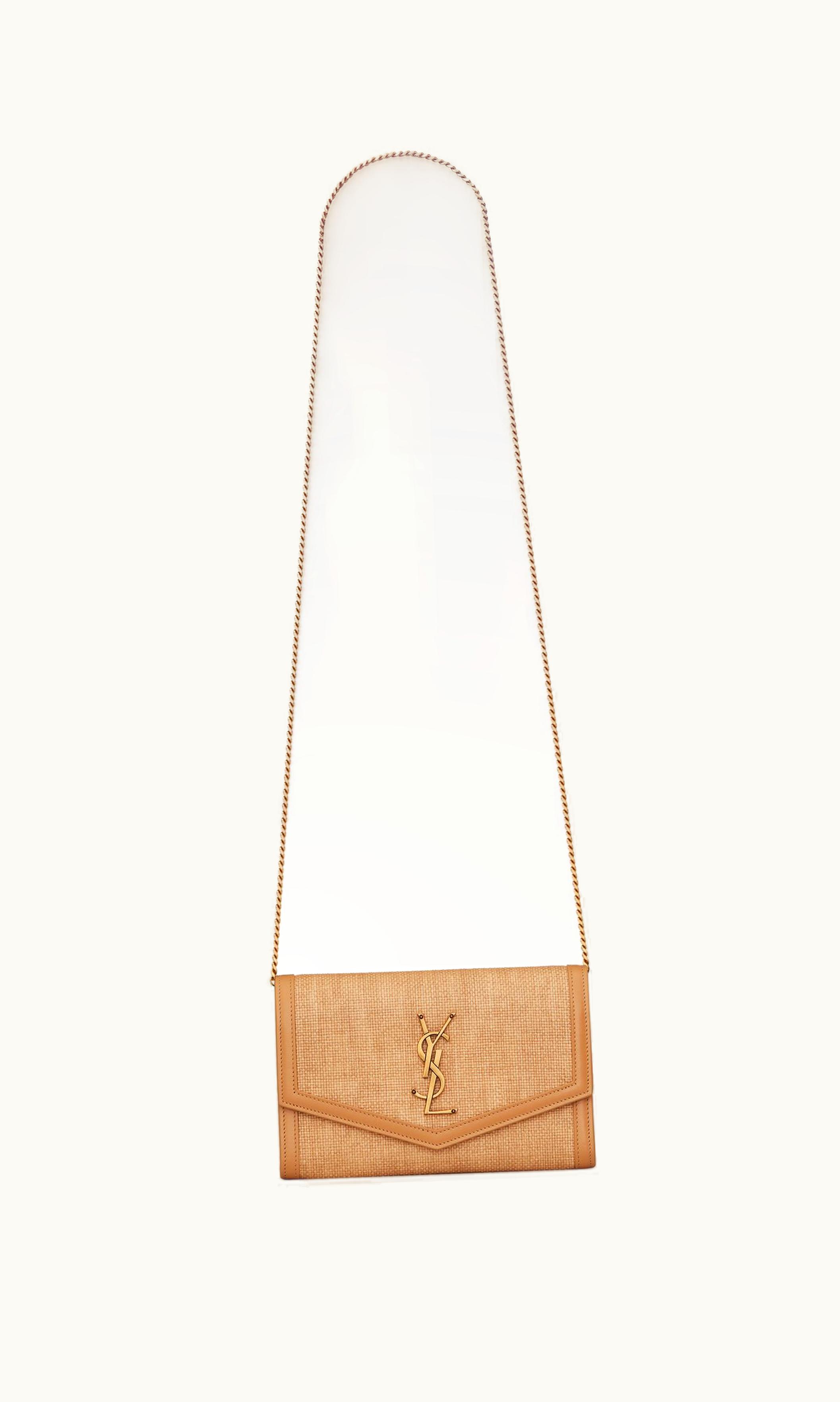 Saint Laurent Uptown Chain Wallet In Micro Raffia | GLINT
