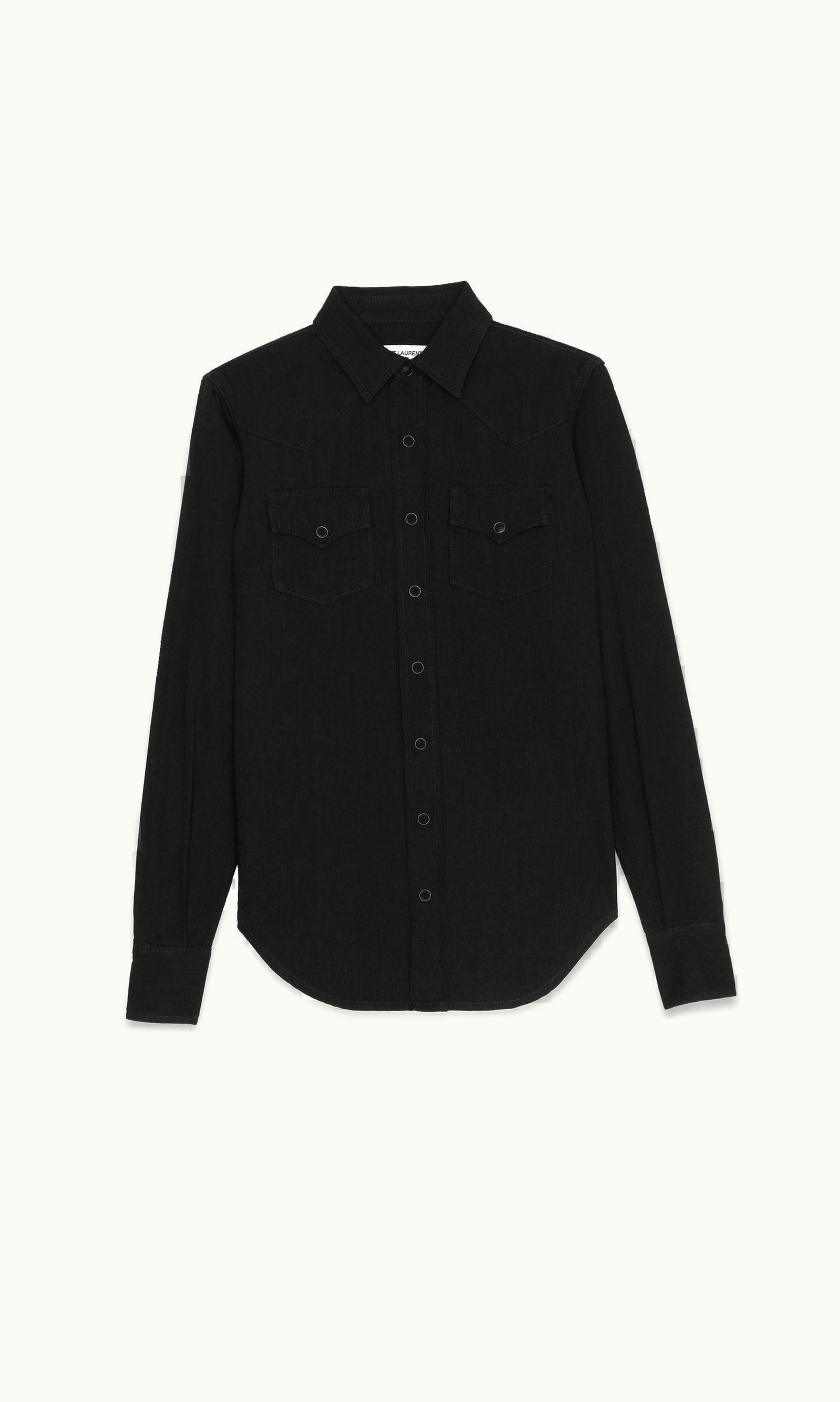 Saint Laurent Western Shirt In Black Rinse Denim UZ0157681 | GLINT