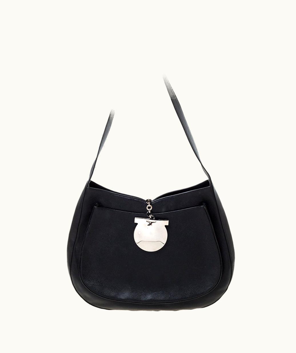 Salvatore Ferragamo Black Leather Hobo - Classic Elegance Handbag Black | GLINT