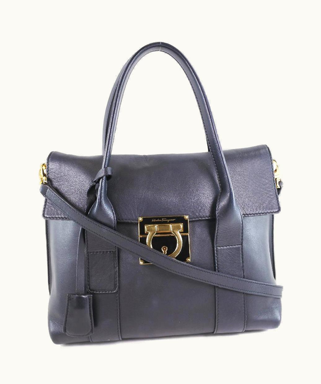 Salvatore Ferragamo Gancini Leather Handbag Black | GLINT