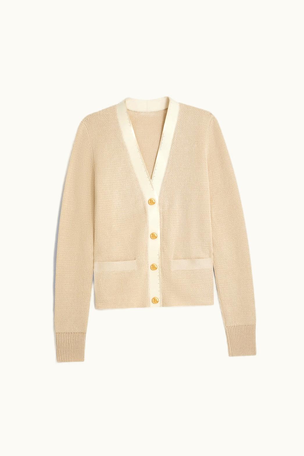 Schiaparelli Mètre Ruban Luxury Cashmere Cardigan in Crimson | GLINT