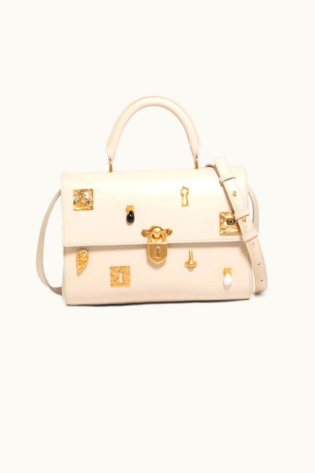 Schiaparelli Secret Gold Measuring Tape Large Bijoux Beige Handbag | GLINT