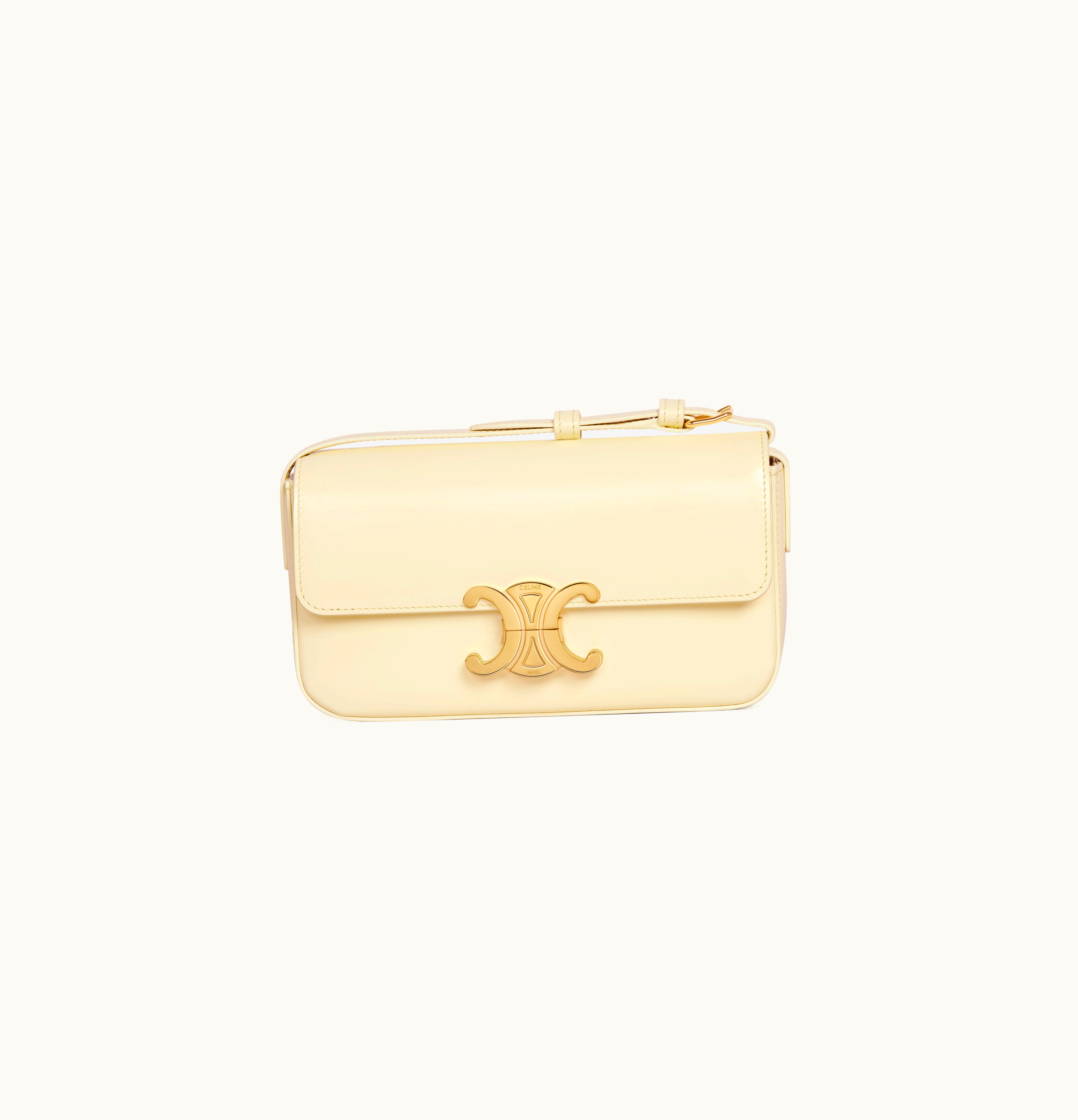 Celine Shoulder Bag Triomphe In Shiny Calfskin Soft Yellow | GLINT