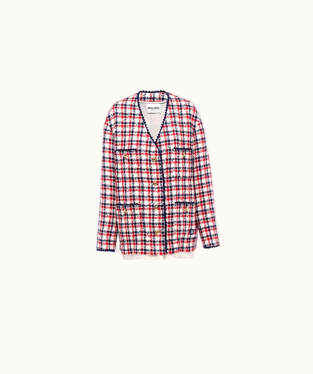 Miu Miu Single-Breasted Check Tweed Jacket UZ0152676 | GLINT