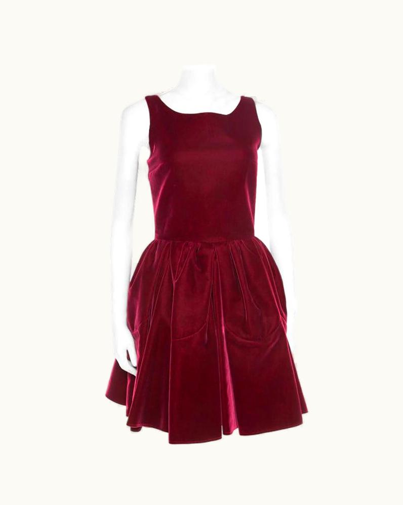 Alaia Burgundy Velvet Sleeveless Gathered Dress | GLINT