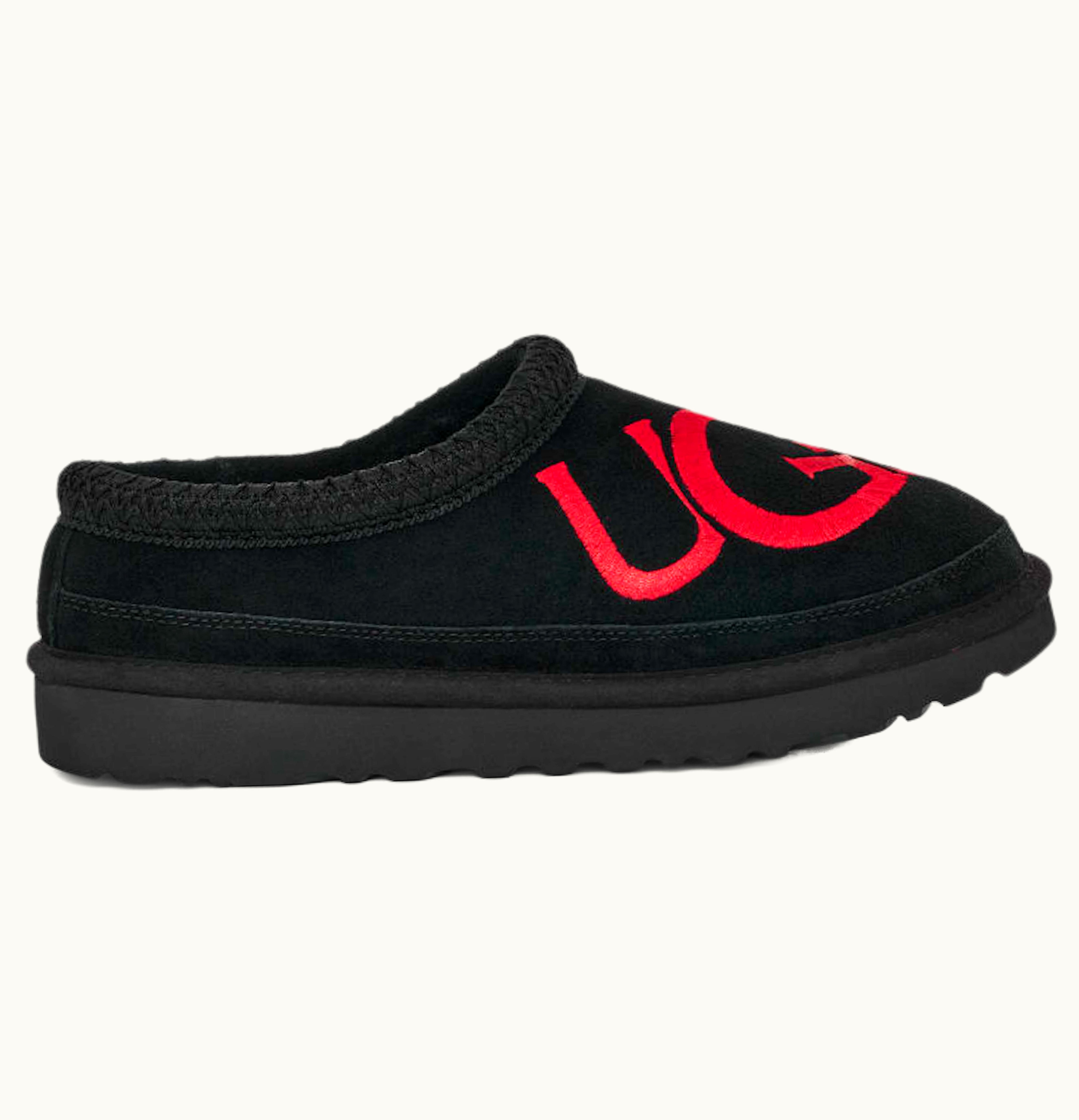 UGG Tasman Logo Slipper Black Samba Red | GLINT