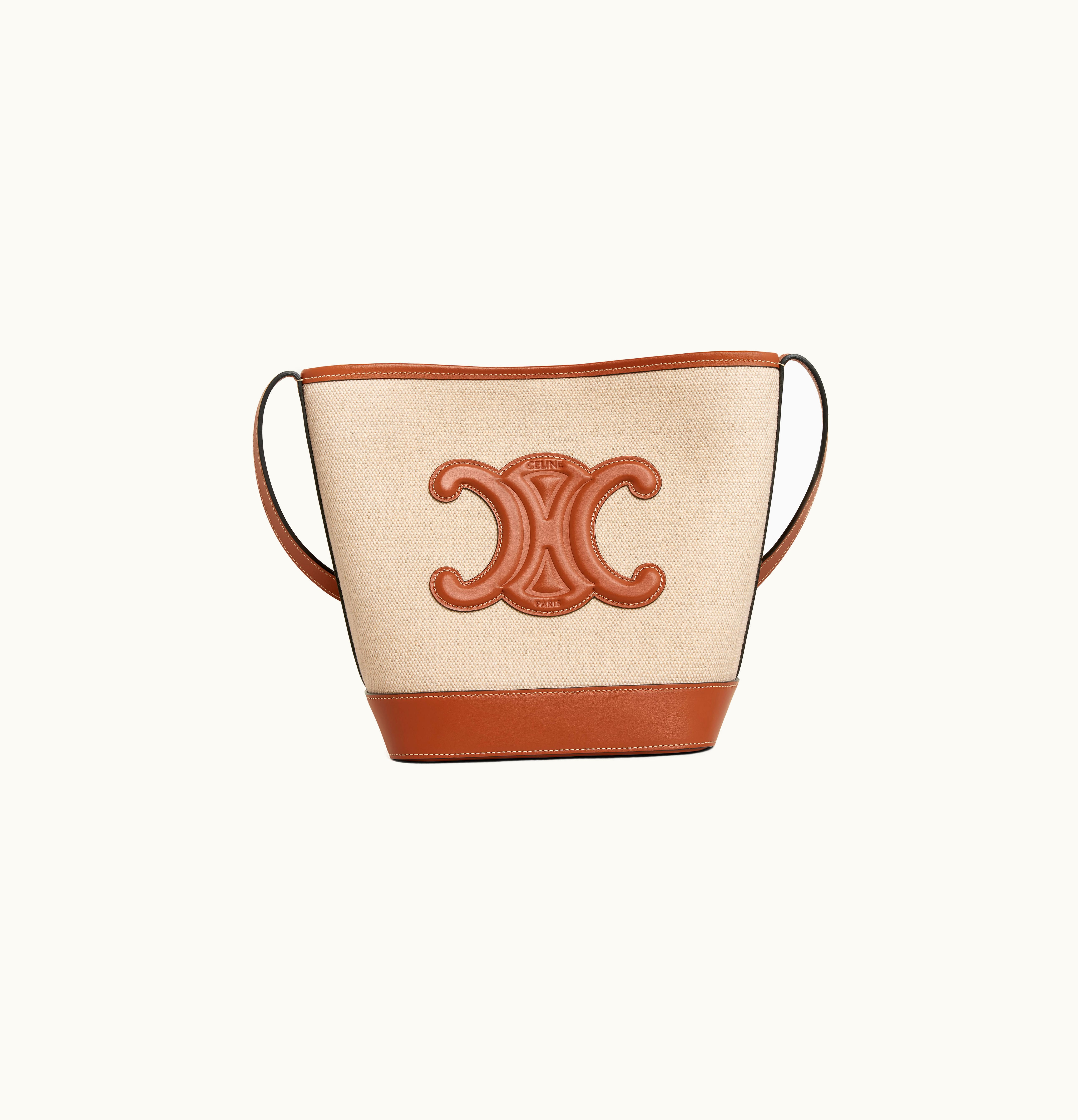 Celine Small Bucket Cuir Triomphe In Textile And Calfskin Natural / Tan | GLINT