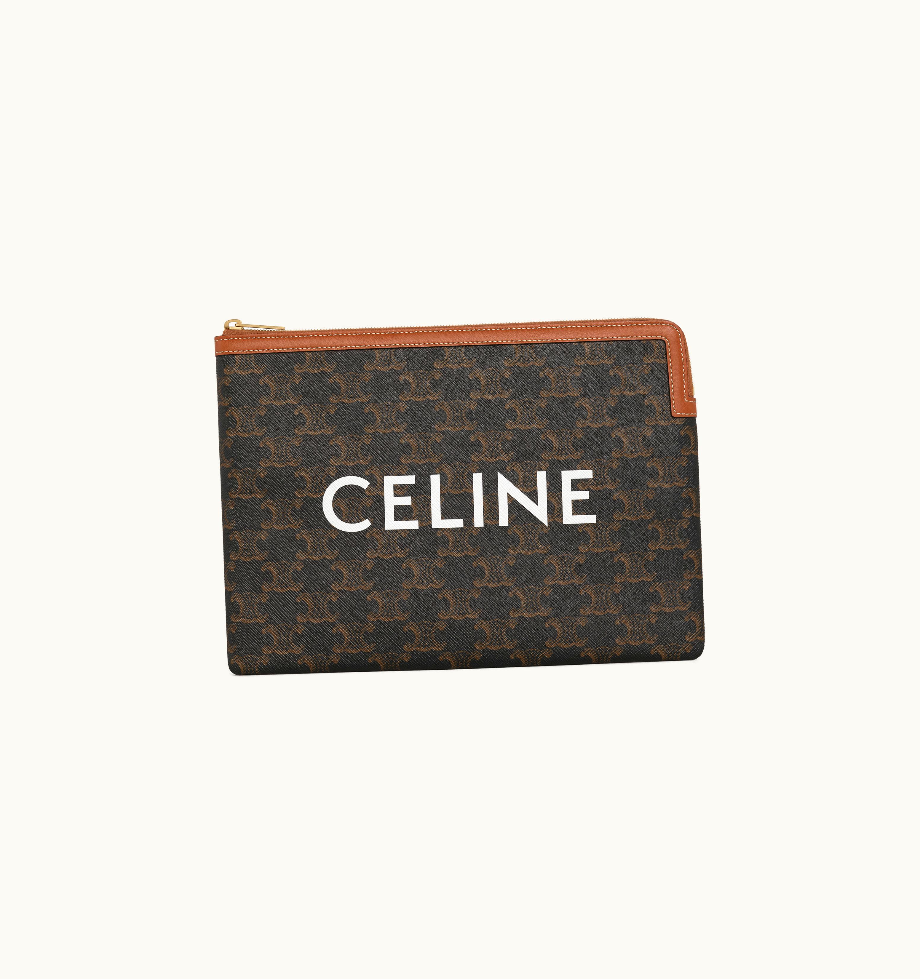 Celine Small Pouch In Triomphe Canvas And Lambskin Tan | GLINT