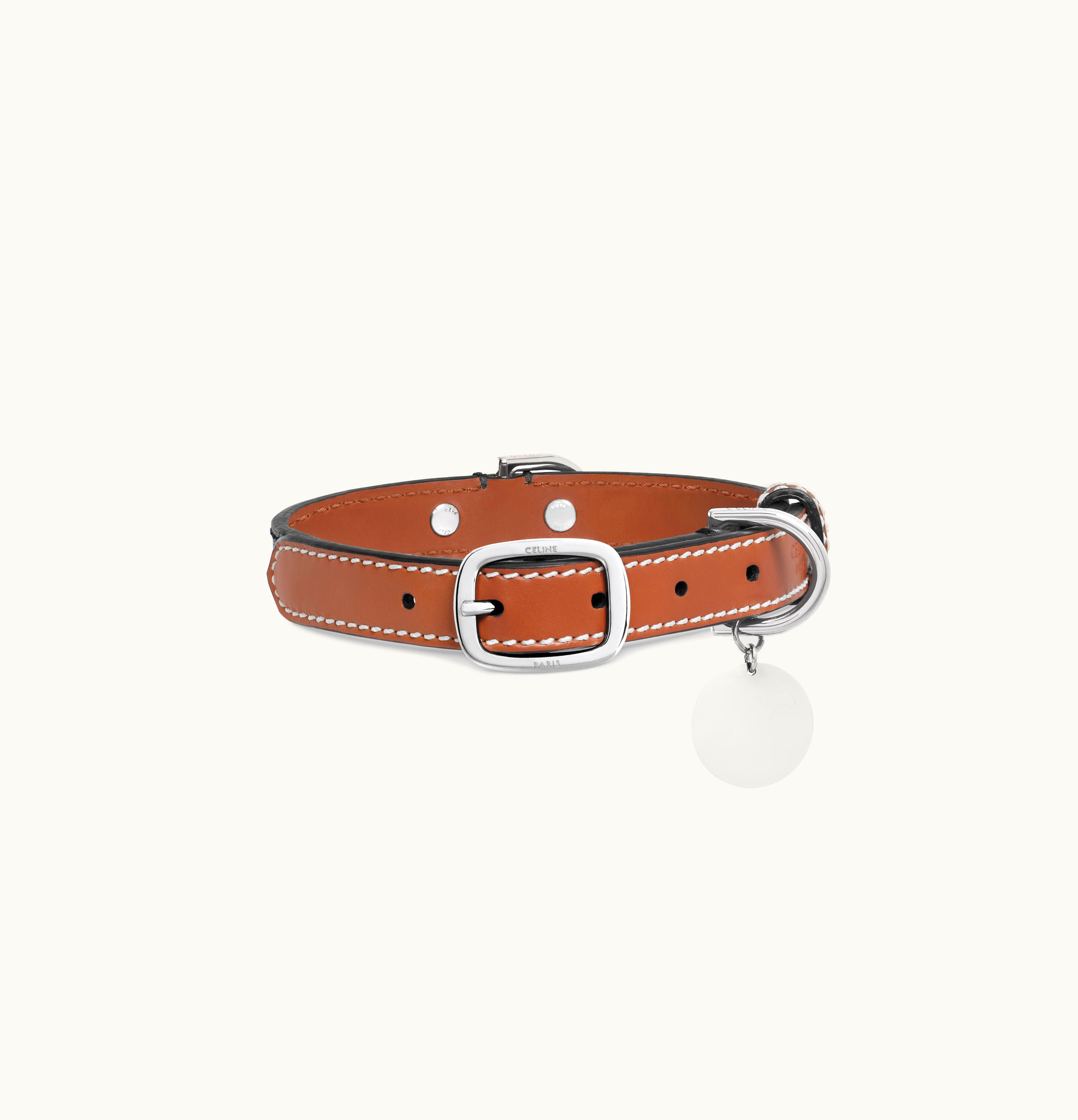 Celine Small Thin Dog Collar In Triomphe Canvas And Calfskin Tan | GLINT