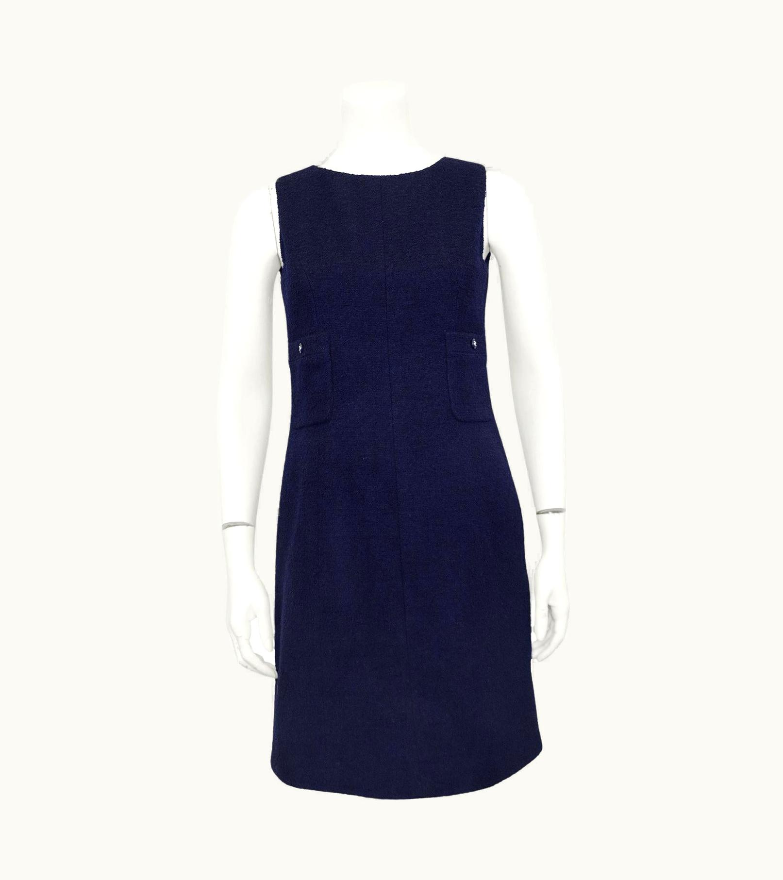 Spring 1996 Chanel Navy Blue Boucle Dress | GLINT