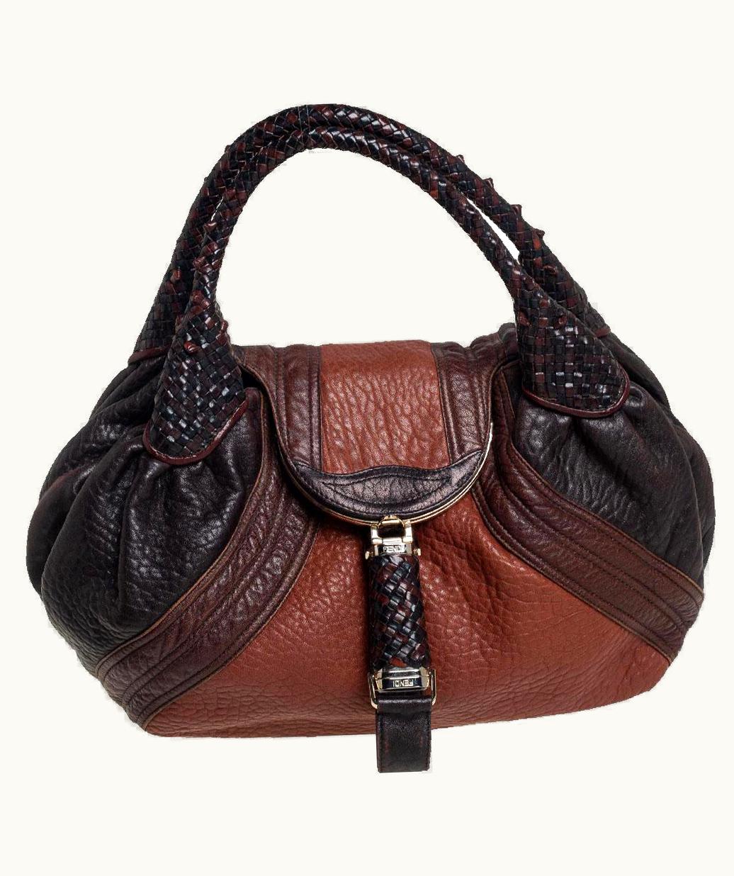 Fendi Brown/Tan Pebbled Leather Large Spy Bag | GLINT