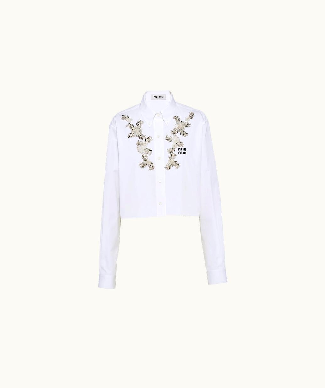 Miu Miu Stone-Embellished Poplin Shirt | GLINT