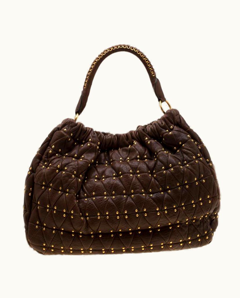 Miu Miu Brown Quilted Leather Studded Hobo | GLINT