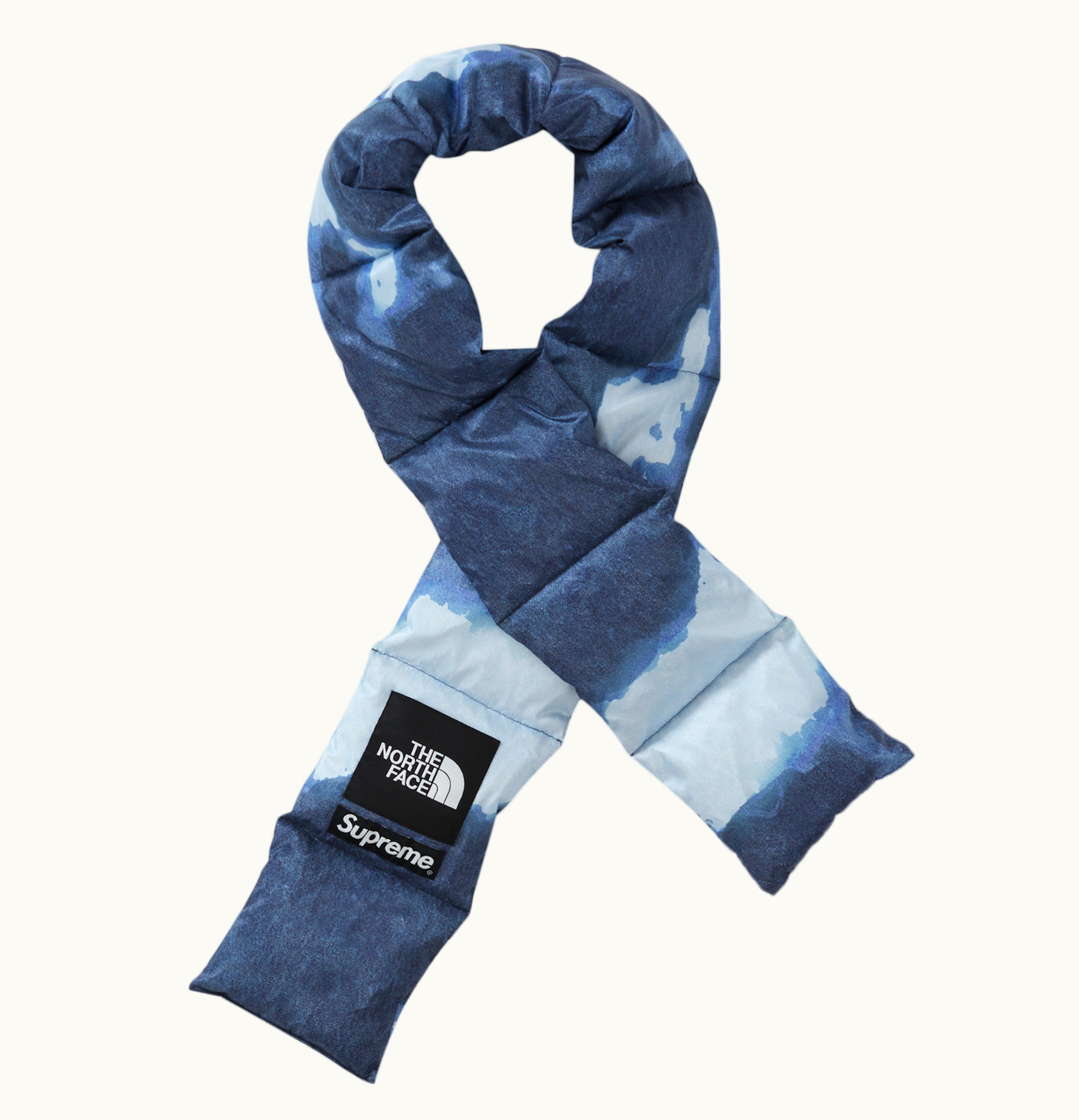 Supreme The North Face Bleached Denim Print 700 Fill Down Scarf Indigo | GLINT