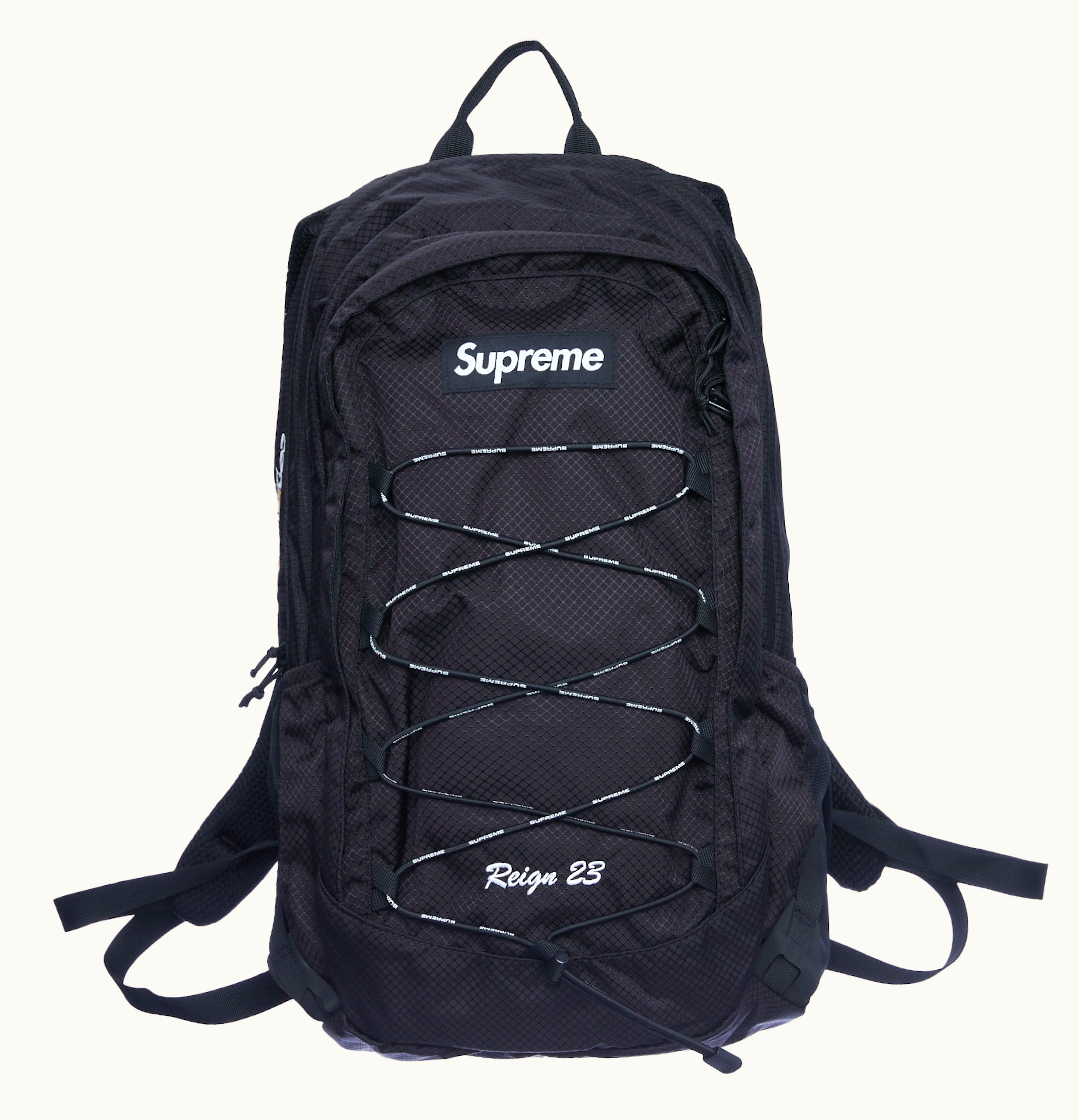The Supreme Backpack Backpack is a high-quality backpack designed to meet the needs of stylish and practical individuals. The bag features a sleek and stylish design with a Supreme logo prominently displayed on the front. It is made of a durable and water-resistant material that ensures your belongings stay dry even on rainy days. The backpack offers ample space to store all your essentials, with a spacious main compartment and multiple pockets for easy organizing. The large main compartment can comfortably accommodate laptops, books, and other bulky items, while the front pocket is ideal for keeping smaller items like phones, wallets, keys, and pens. The Supreme Backpack Backpack is designed with comfort in mind, featuring padded shoulder straps and a back panel that reduces pressure on your shoulders and back. It is also suitable for different body types, with adjustable straps that ensure a perfect fit. This backpack is perfect for school, work, and outdoor activities like hiking and camping. It is stylish, practical, and built to last, offering the perfect combination of quality and aesthetics. Whether you're on the go, traveling, or running errands, the Supreme Backpack Backpack is an excellent choice for those who demand the best.