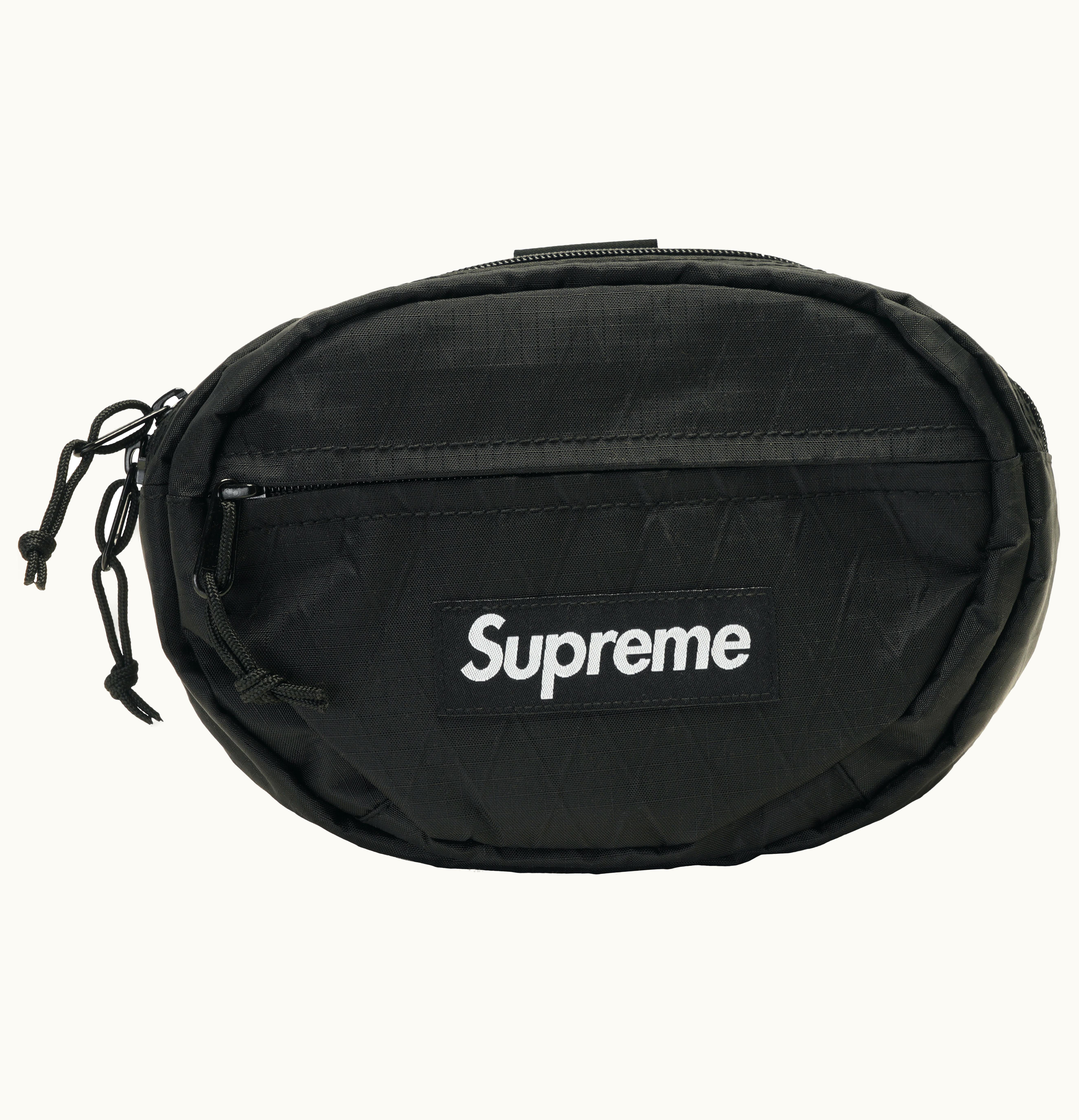 The FW18 iteration of Supreme's Waist Bag was one of the hottest items of the season and it did not disappoint. The all-black version quickly sold out both in-store and online, becoming a fan favorite. Built with Dimension-Polyant VX21-RS 4-layered fabric and 50 denier taffeta backing, this 1.2L capacity bag is waterproof, abrasion-resistant, and boasts two zippered compartments and an adjustable waist strap. The bottom of the bag features a 3M reflective logo. The coveted accessory dropped on August 16th, 2018, with a retail price of $88. Whether you choose to wear it as a fanny pack or sling it over your shoulder, this Supreme waist bag is a functional and trendy addition to your closet. GLINT is the perfect place to find this iconic piece.