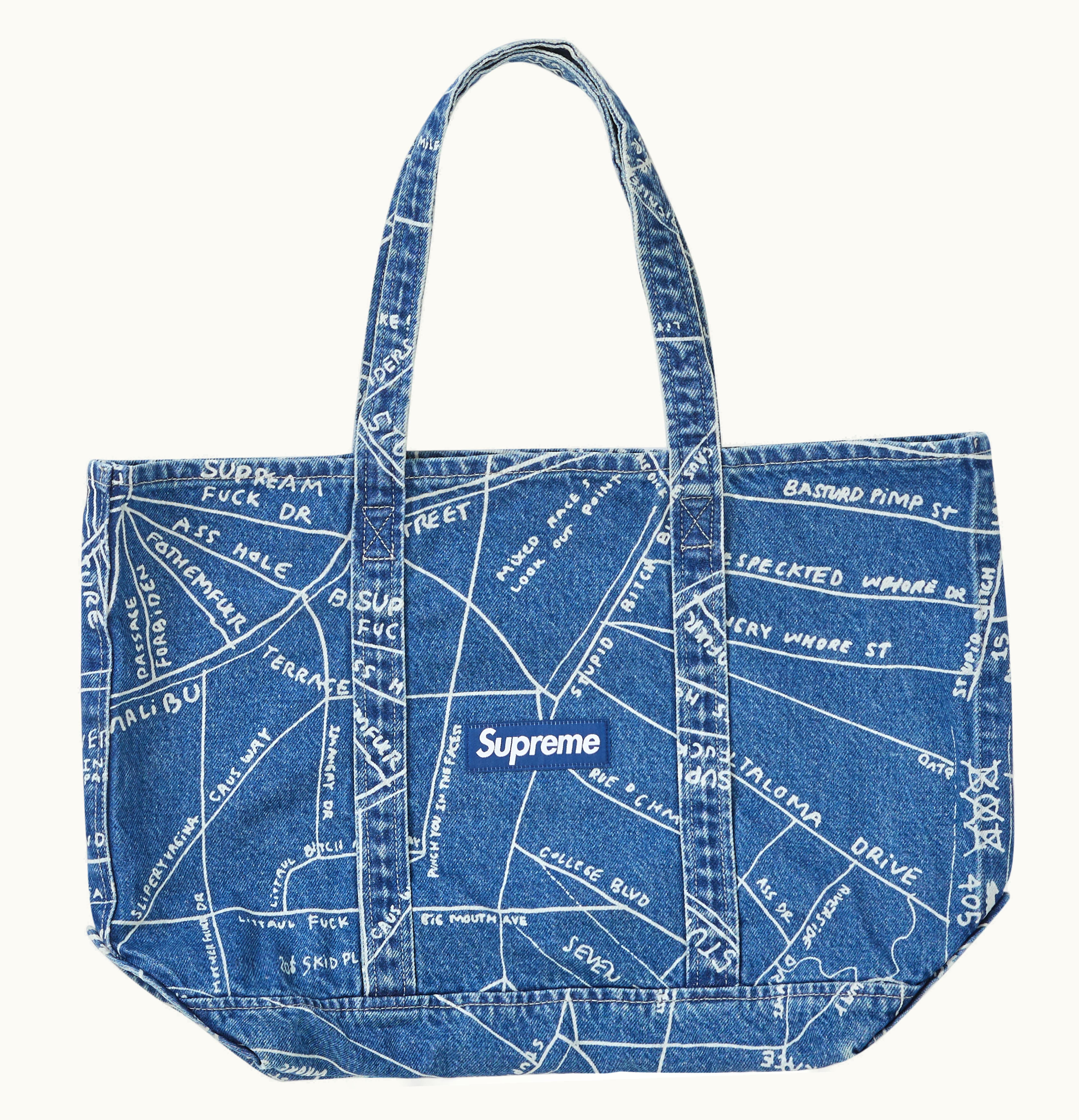 Supreme Gonz Map Denim Tote Washed Blue | GLINT