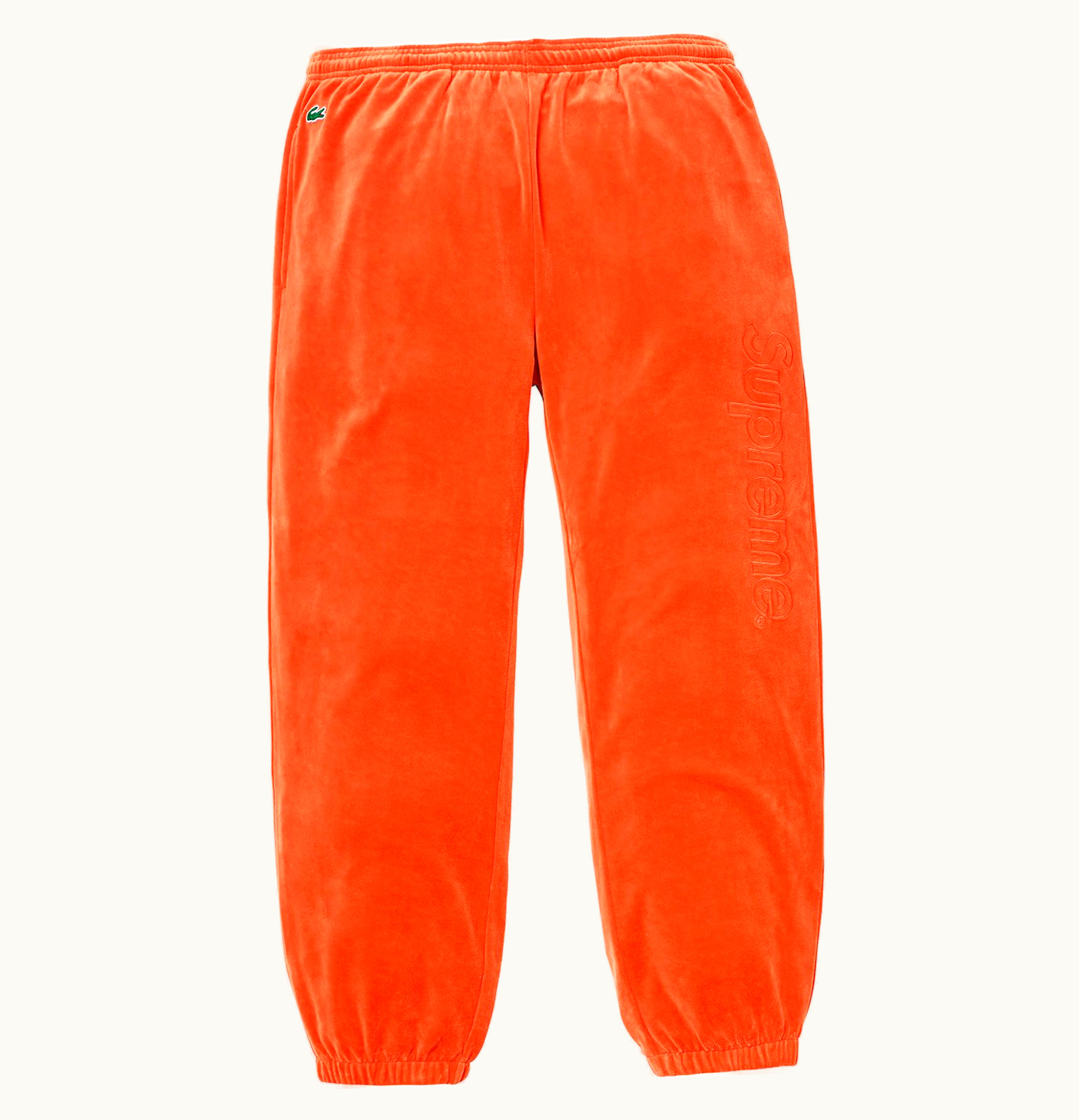The Supreme LACOSTE Velour Track is a premium quality, limited edition tracksuit designed in collaboration with the iconic French sportswear brand LACOSTE. The tracksuit features a classic velour construction that ensures both durability and comfort for the wearer. The plush texture and feel of the fabric give this tracksuit a luxurious appeal that is highly sought after by fashion-conscious consumers. The tracksuit is available in three classic colorways - black, red, and green. The iconic LACOSTE crocodile logo is embroidered on the chest of the jacket as well as on the hip of the pants. Other features include a full zipper closure on the jacket, ribbed cuffs and waistbands, and a drawstring waistband on the pants for an adjustable fit. This tracksuit is perfect for both casual wear and athletic activities. It is versatile, stylish, and comfortable, making it a must-have item for any wardrobe. The limited edition nature of this collaboration also adds to its exclusivity and desirability, making it a highly coveted item in the streetwear community.