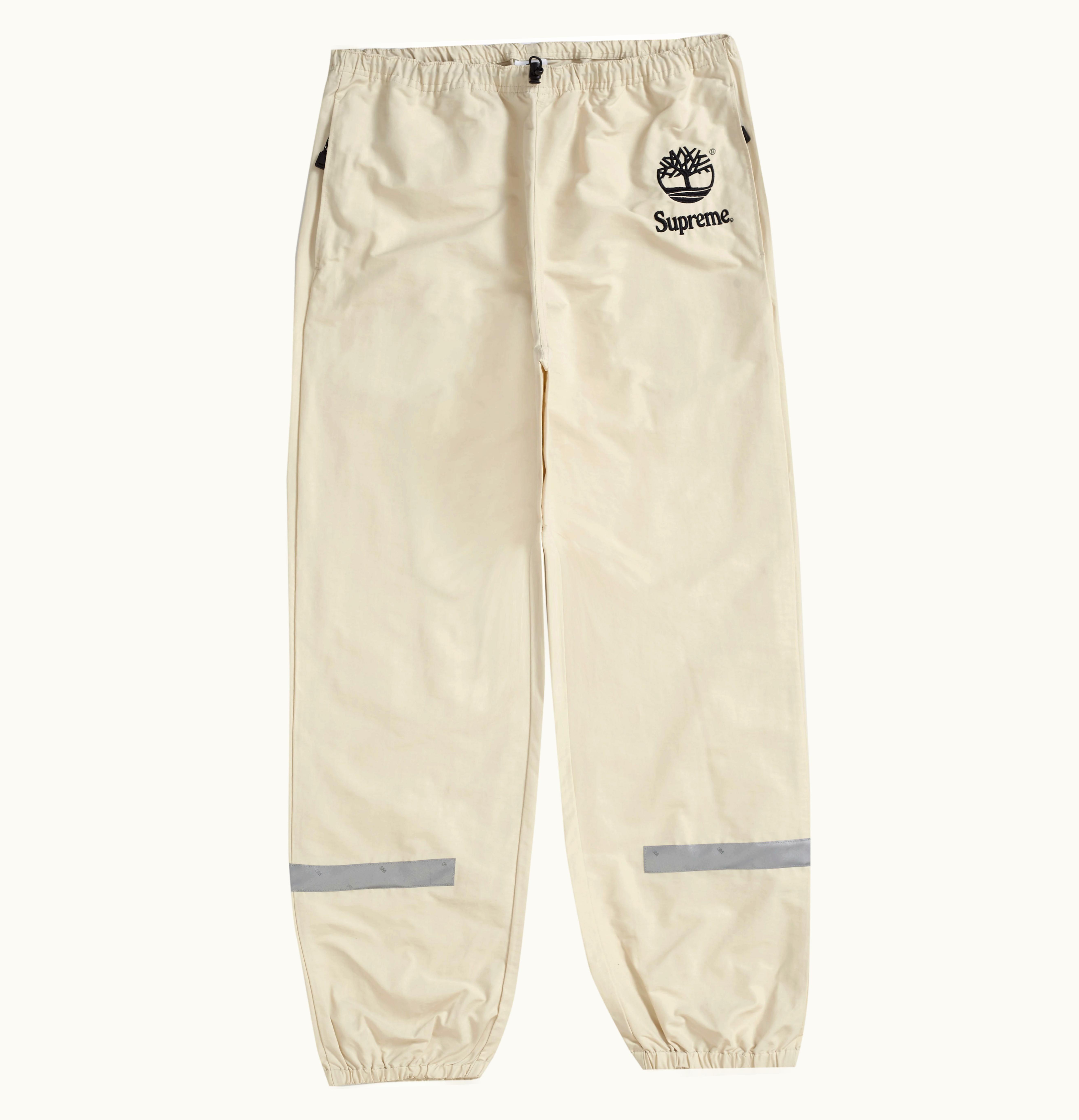 The Supreme Timberland Reflective Taping Track is a premium quality track pants designed to elevate your street style game. These track pants feature the iconic Timberland logo and reflective taping detailing, adding a touch of modernity to the classic look of track pants. Made from high-quality materials, the Supreme Timberland Reflective Taping Track is lightweight, breathable, and comfortable to wear. The pants are available in multiple sizes and feature an elasticated waistband with adjustable drawstrings for the perfect fit. The ribbed cuffs at the bottom of the pants offer a tailored look, while also keeping warmth in on colder days. Ideal for outdoor activities, running errands or simply lounging at home, the Supreme Timberland Reflective Taping Track is the perfect addition to your wardrobe. It is also perfect to complete your streetwear look with Supreme's signature touch of luxury.