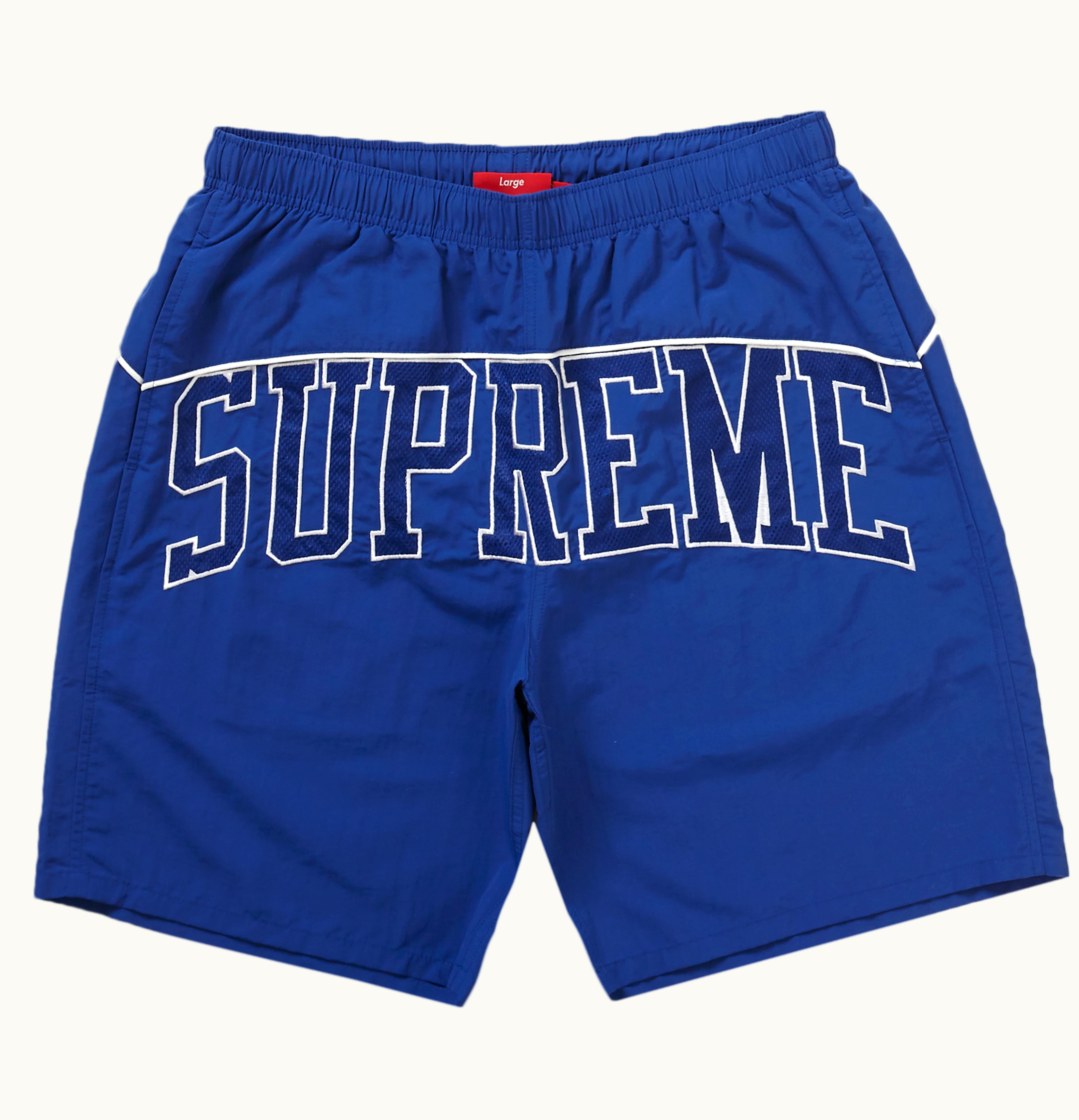 GLINT currently stocks the Supreme Arc Water Short Royal (SS22) in sizes ranging from S to XXL. This brand new product, in a stunning royal blue shade, is fully authentic. <br> <br> Featuring Supplex nylon taslan material, this swimsuit includes a mesh lining, seam hand pockets, an elastic waistband with internal drawstring, and a hanging key pocket. Additionally, it has built-in briefs and an embroidered logo arc at the seat. <br> <br> The Supreme Arc Water Short Royal (SS22) was launched on June 30th, 2022, and retailed for $150. GLINT is pleased to offer this fantastic product to customers looking for high-quality swimwear.