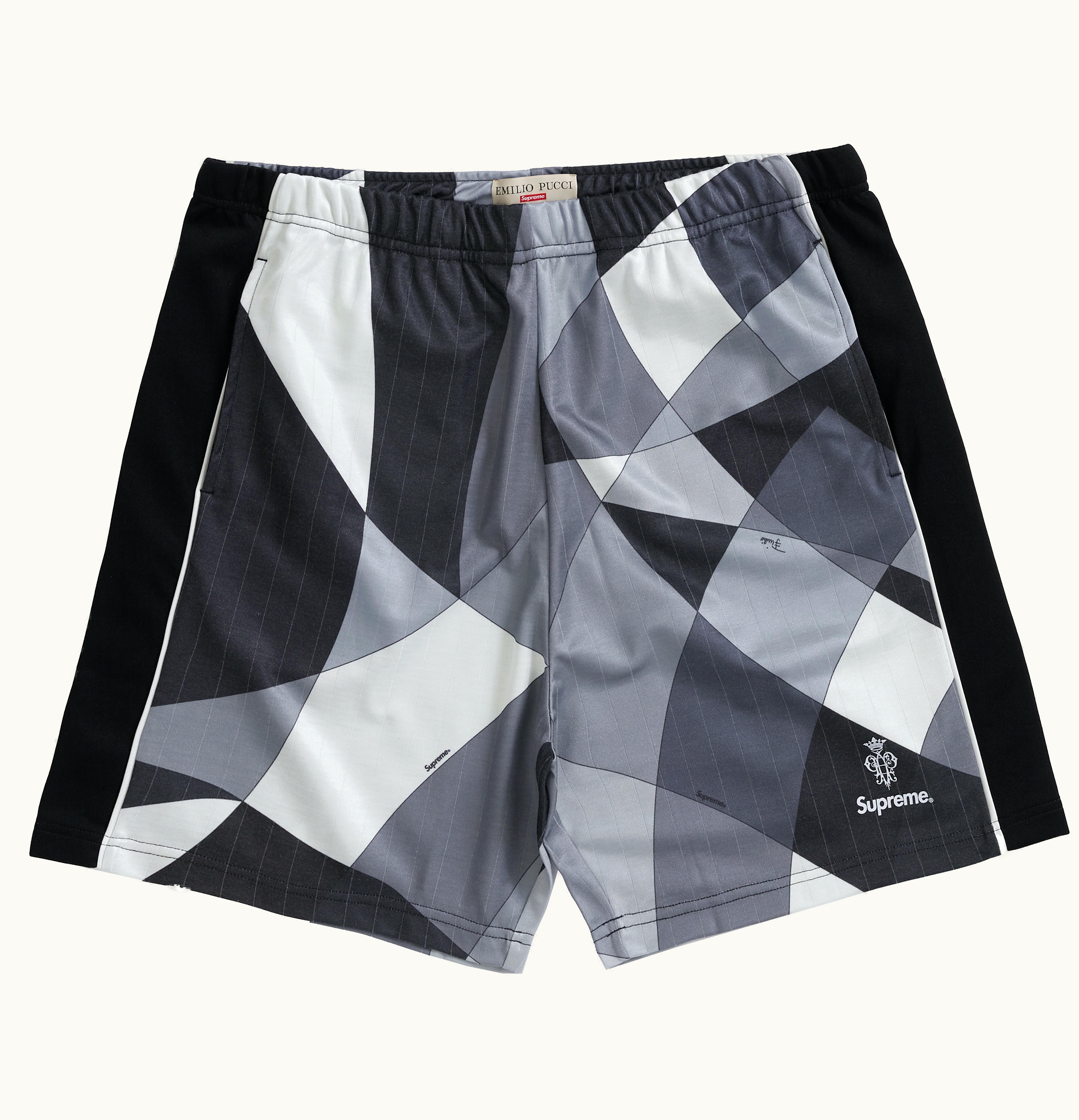 The Spring/Summer 2021 Week 16 collaboration between Supreme and Emilio Pucci included the highly sought-after Supreme Emilio Pucci Soccer Short, which was released in three colorways along with more than 40 other pieces. These shorts feature a distinct grey pattern shared by other Supreme x Emilio Pucci collaboration pieces and showcase both brands' logos on the left leg. On June 10th, 2021, the shorts were made available for purchase at a retail price of $138 USD, exclusively through GLINT.