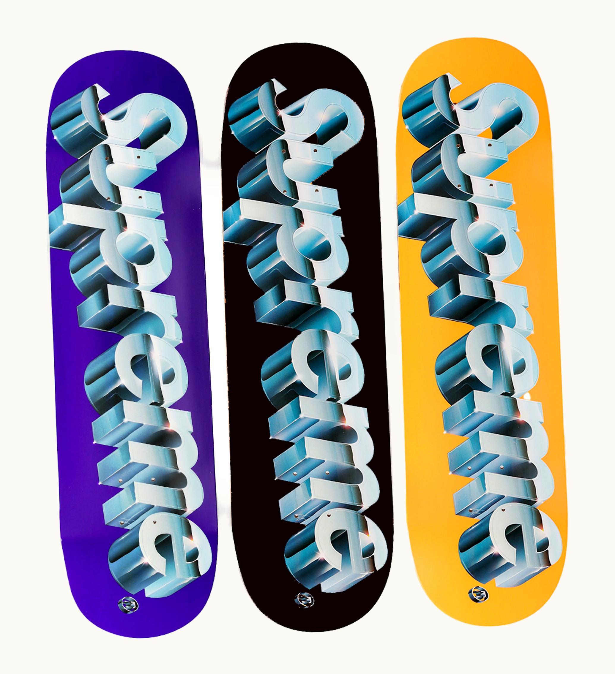 Supreme Chrome Logo Skateboard Black Orange Purple Set | GLINT