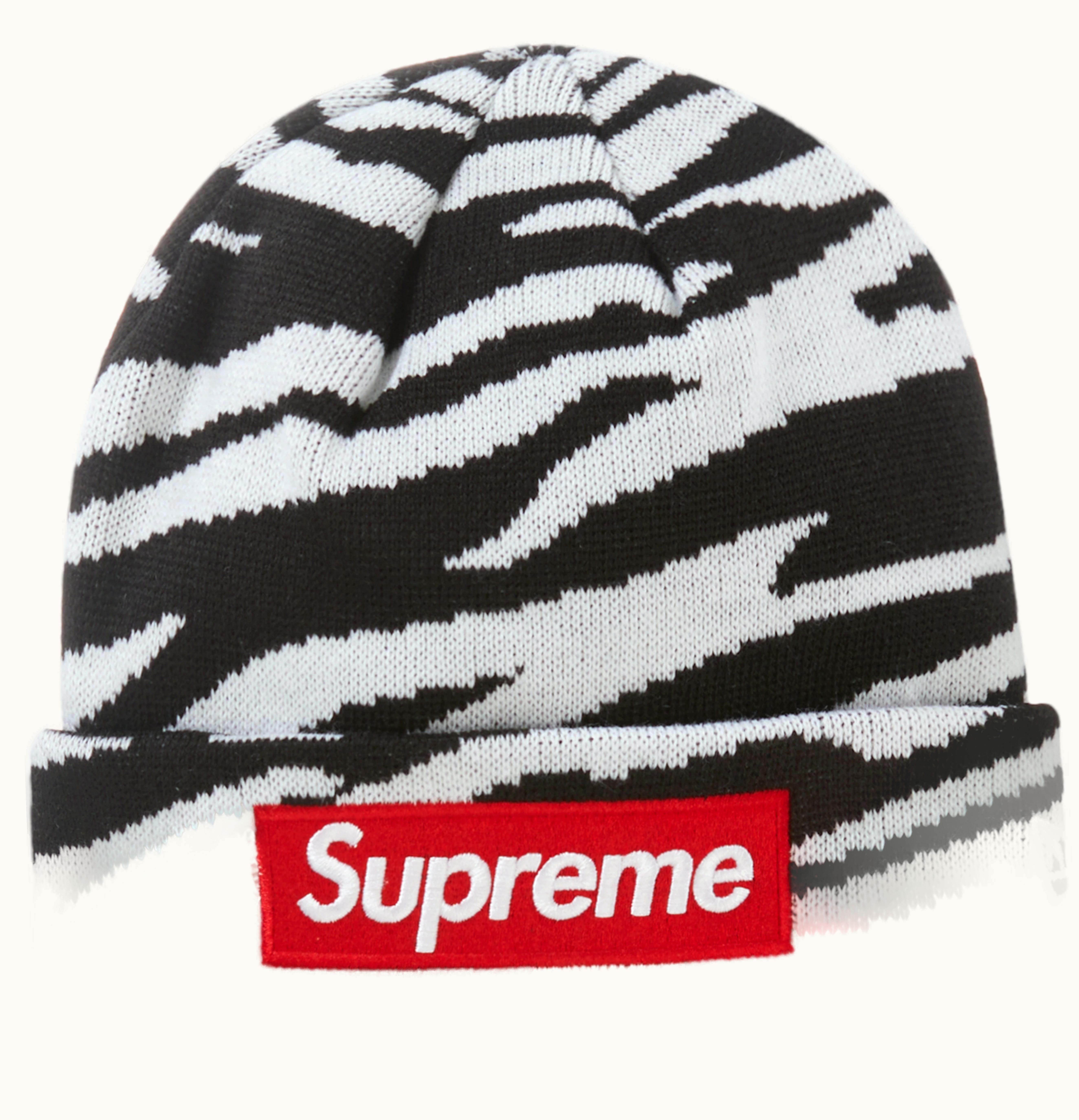 Supreme New Era Box Logo Beanie FW22 Zebra | GLINT