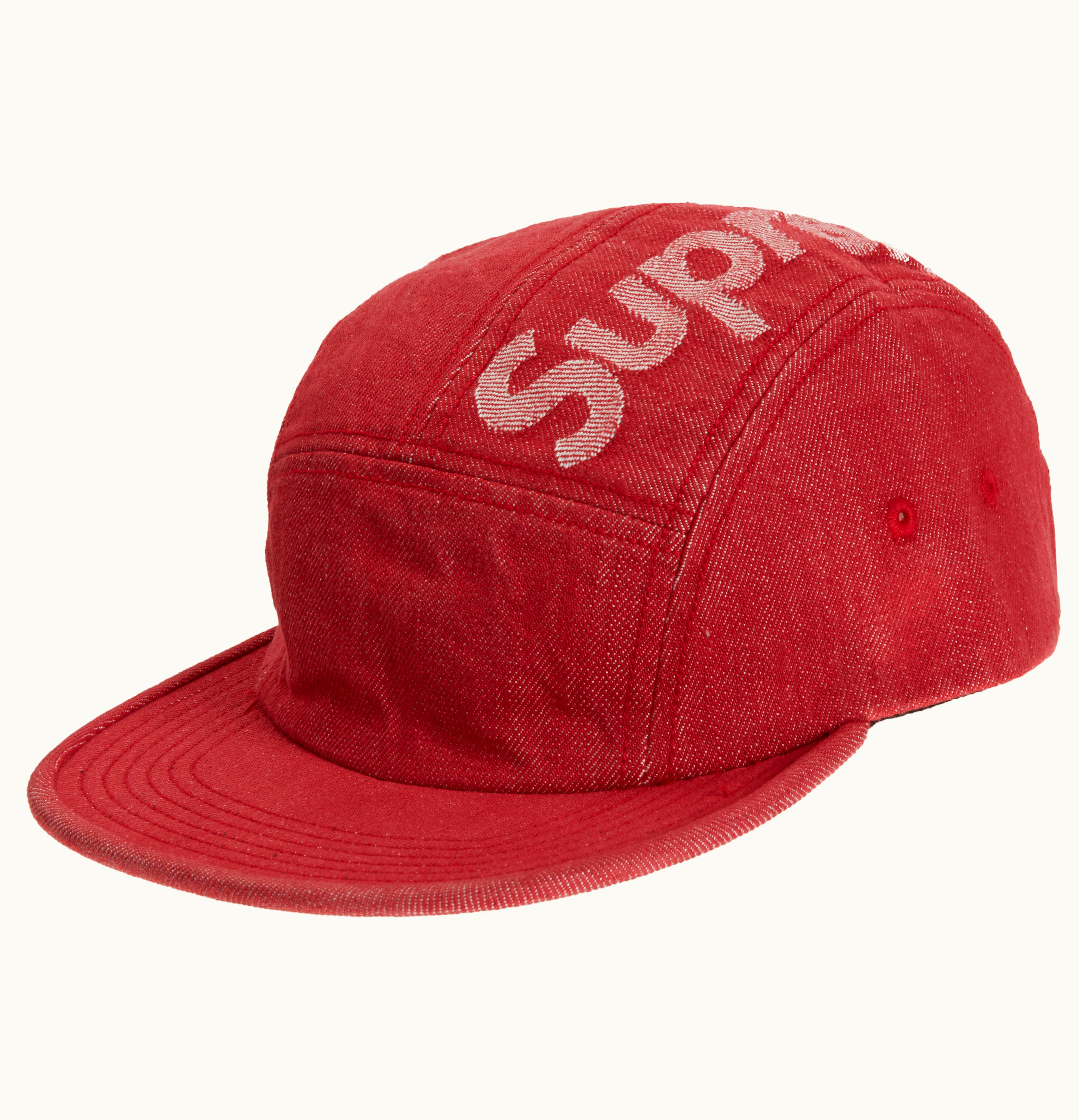 Supreme Top Logo Denim Camp Cap Red | GLINT