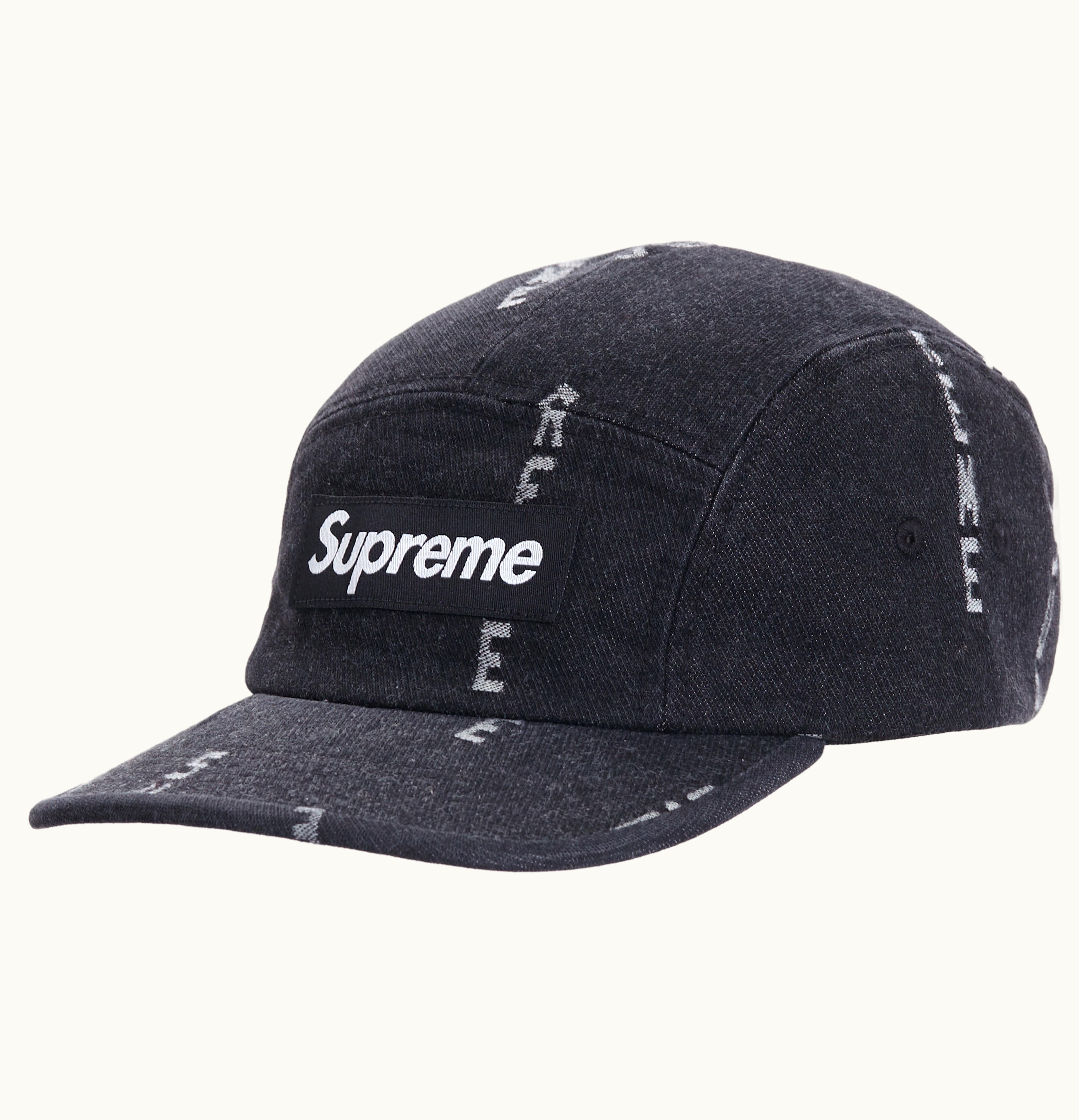 Supreme Logo Stripe Jacquard Denim Camp Cap Black | GLINT