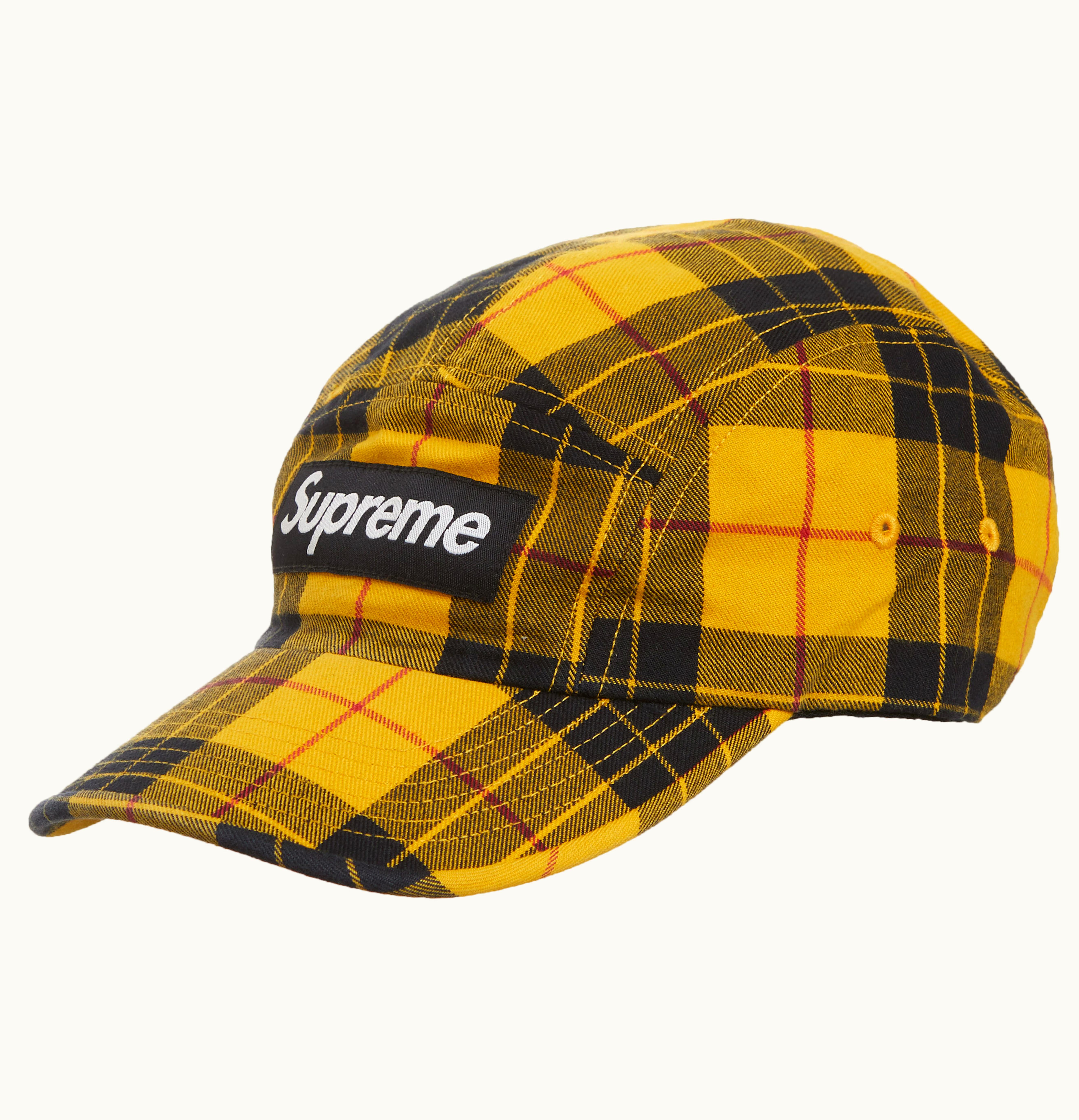 Supreme Washed Chino Twill Camp Cap FW20 Yellow Tartan | GLINT