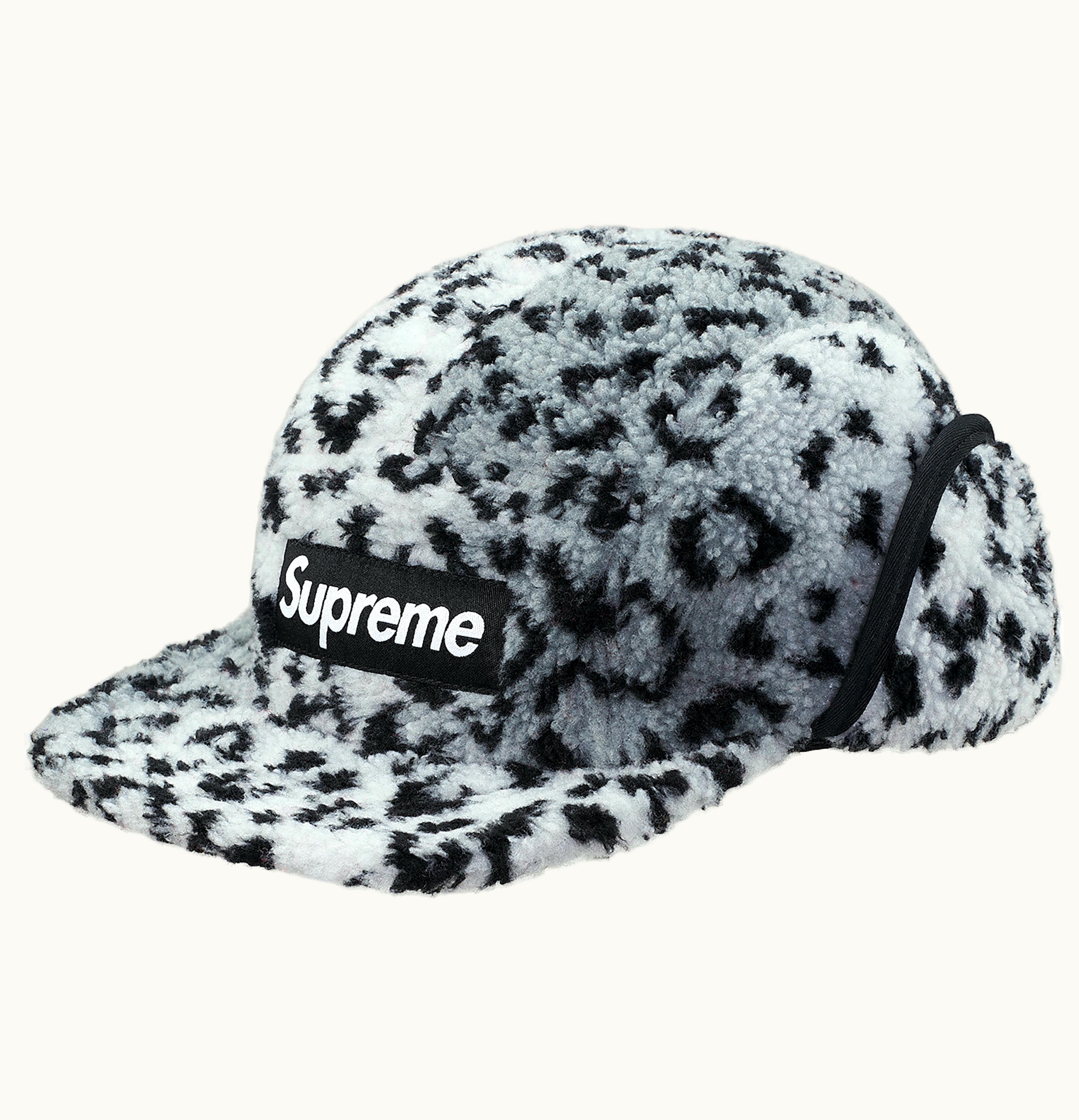 Supreme Leopard Polar Fleece Earflap Camp Cap White | GLINT