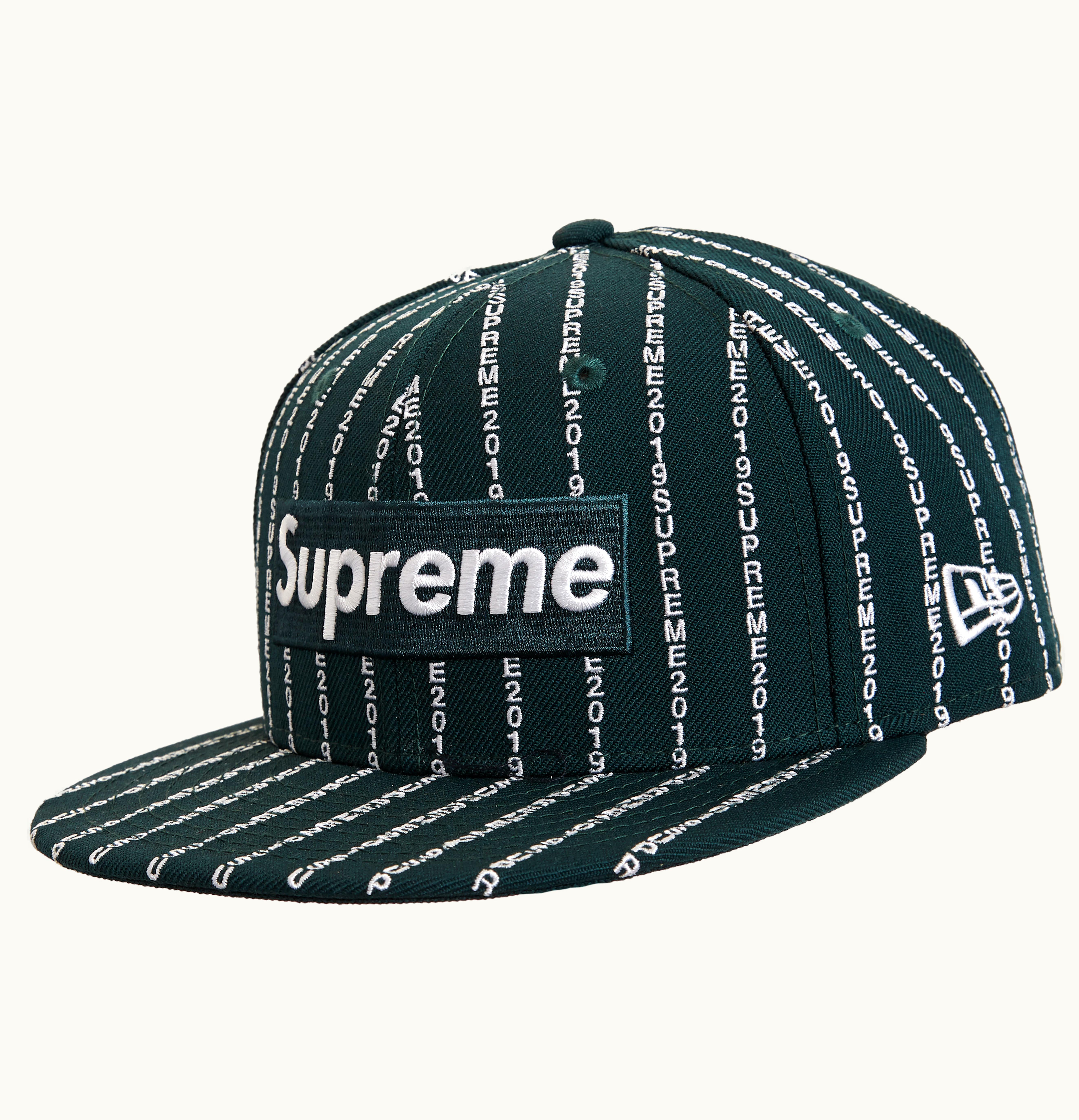 Supreme Text Stripe New Era Cap Dark Green | GLINT