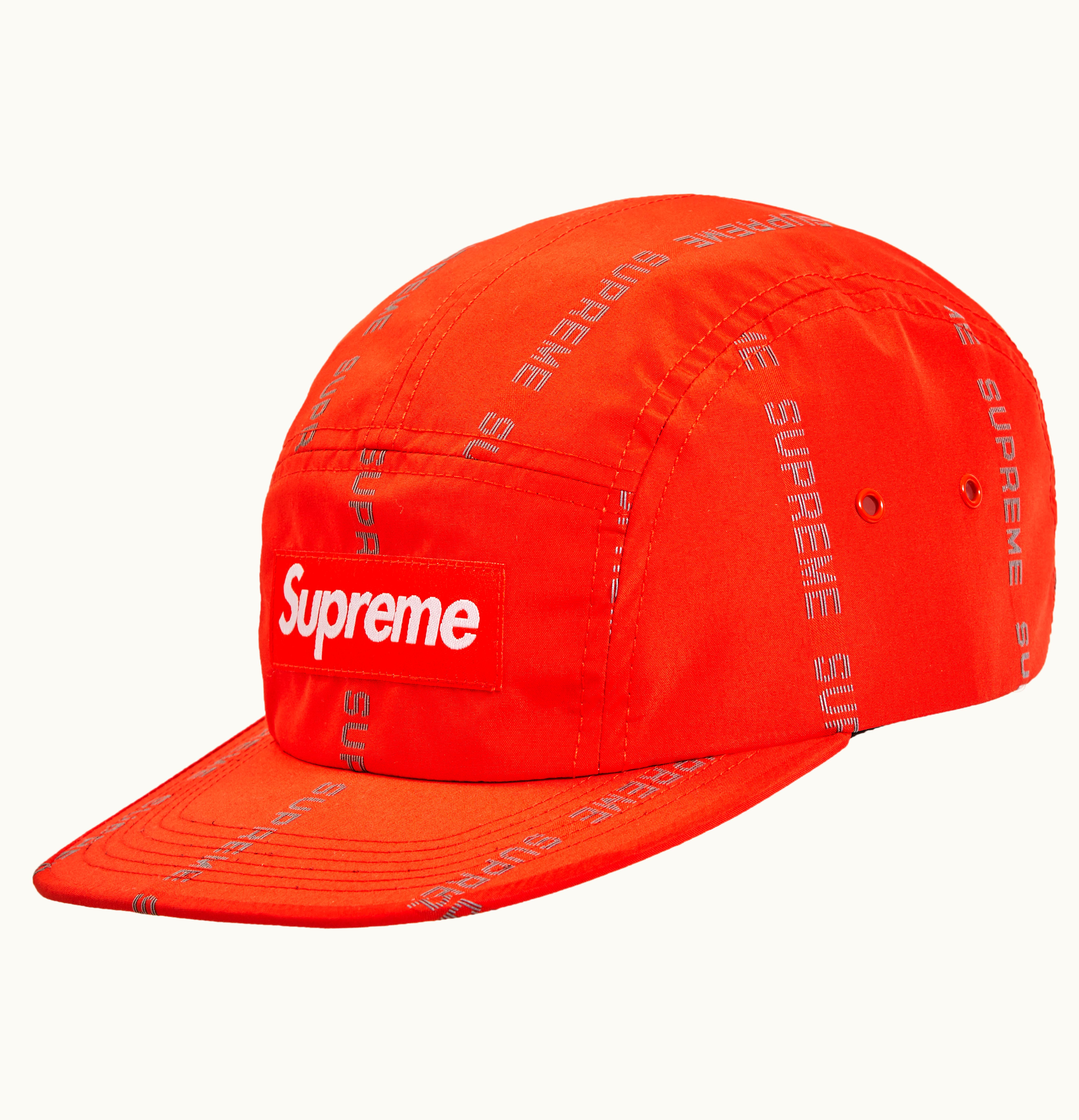 Supreme Reflective Text Camp Cap Orange | GLINT
