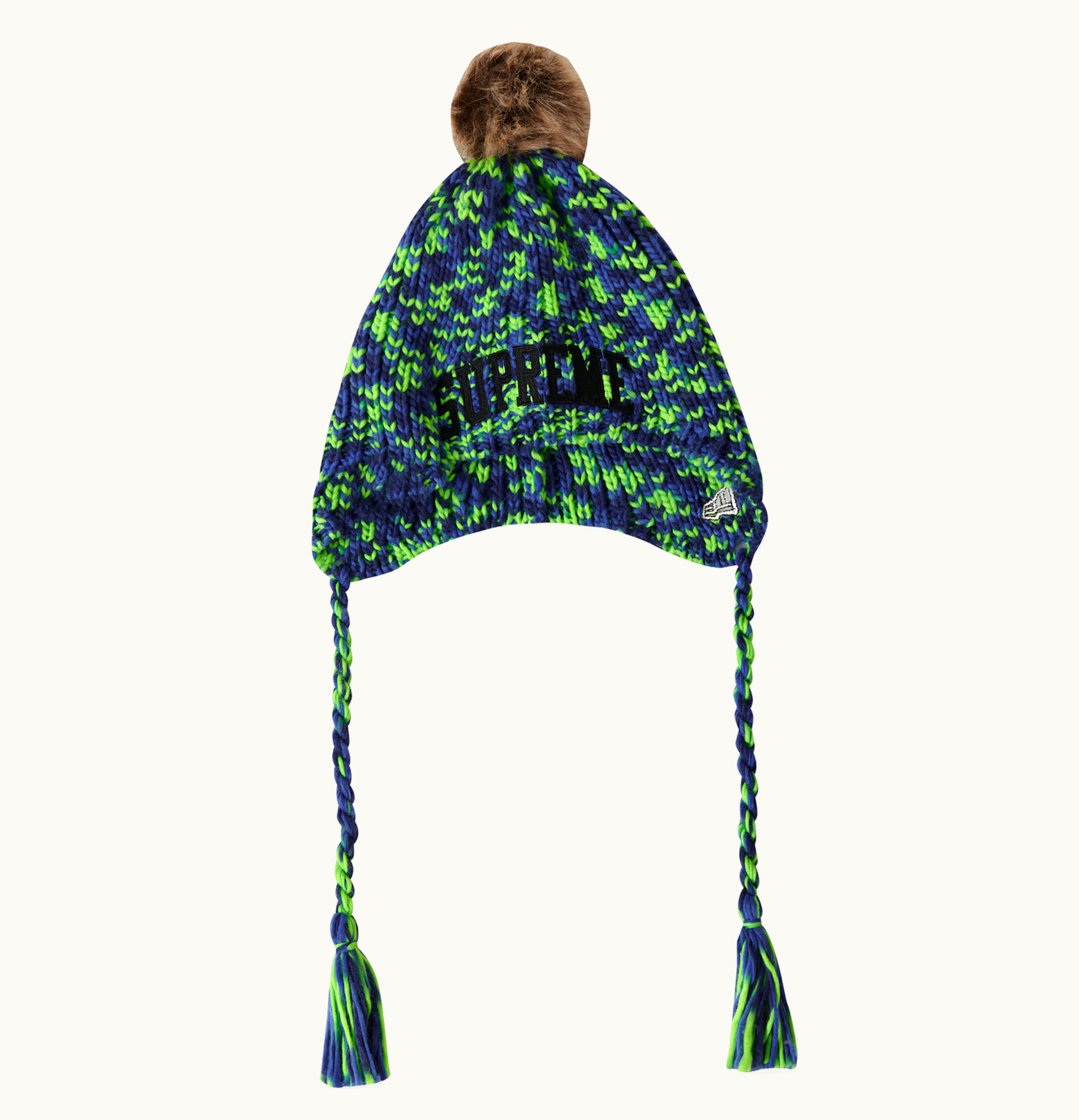 The Supreme New Era Toboggan is a premium quality winter hat, designed to keep you warm and comfortable in cold weather. Made of a soft and durable acrylic material, this toboggan features a ribbed knit construction that hugs your head snugly, preventing cold air from seeping through. The hat is lined with a soft and warm fleece for added warmth and comfort. The front of the hat is adorned with a bold Supreme logo embroidered in contrasting colors, adding a touch of style to the classic design. This hat is perfect for winter sports, outdoor activities, or everyday wear, and is sure to become your go-to accessory for the cold season.