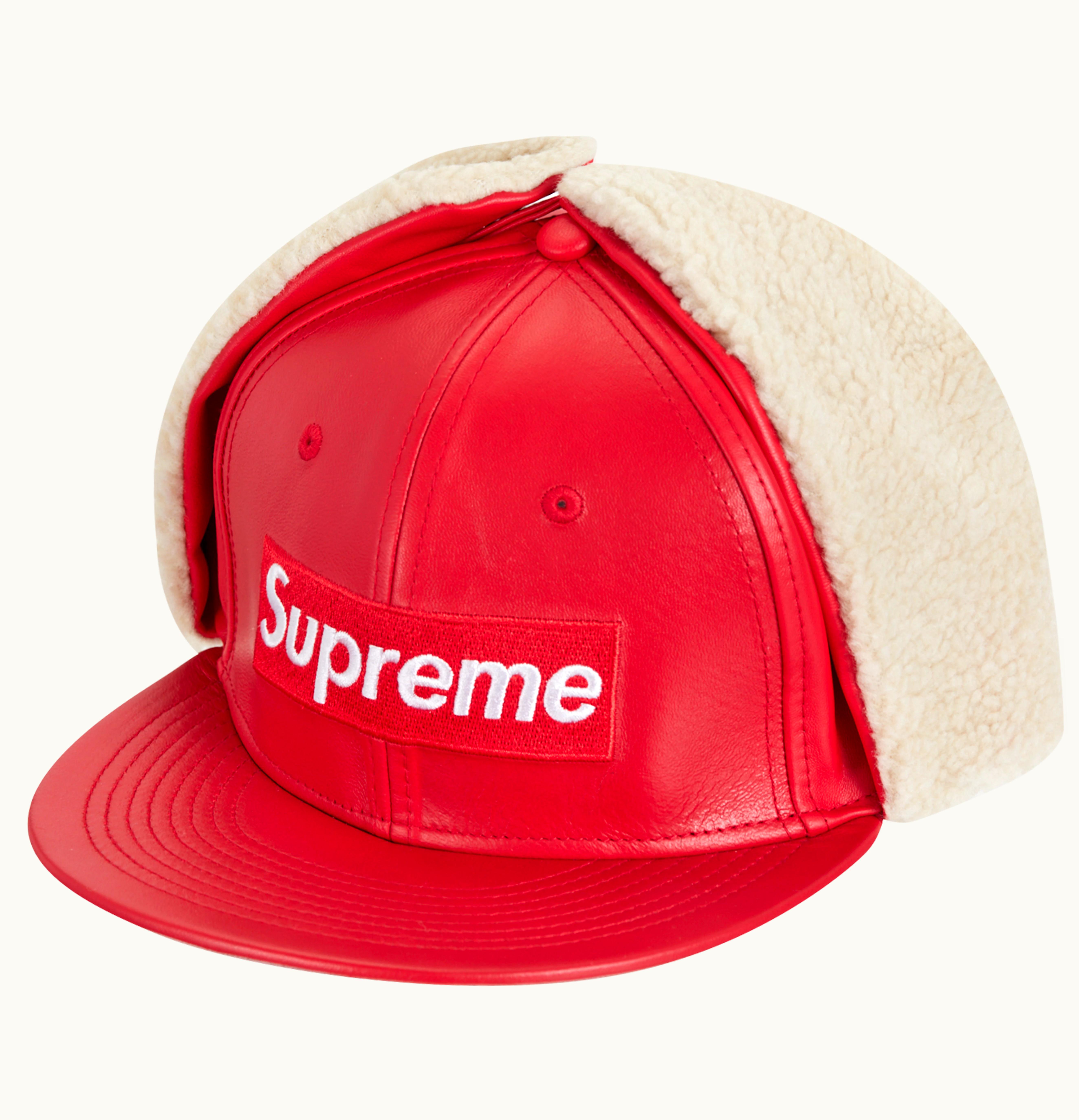 Supreme Leather Earflap Box Logo New Era Red | GLINT