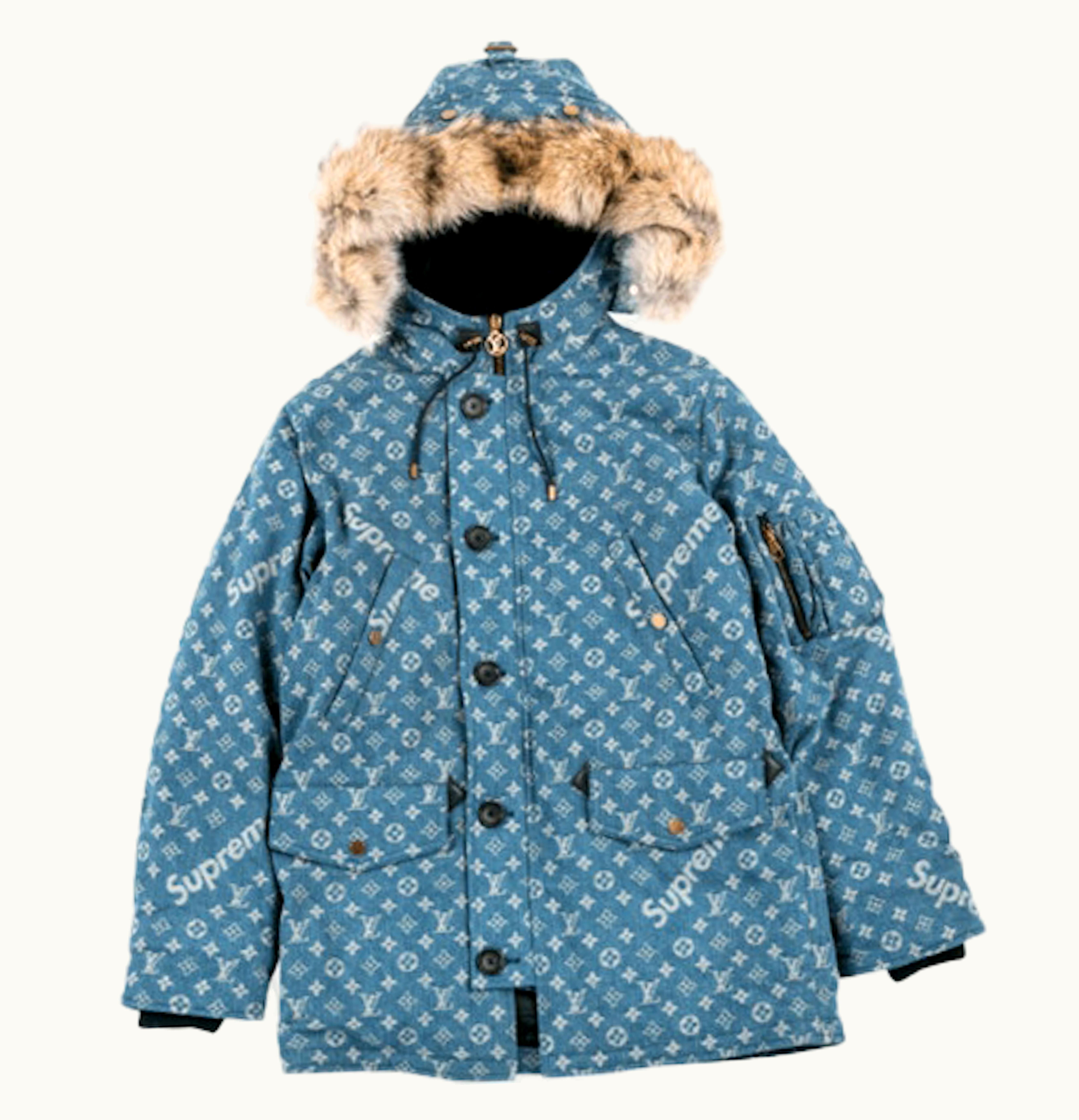 Supreme Louis Vuitton Jacquard Denim N 3B Parka Blue | GLINT