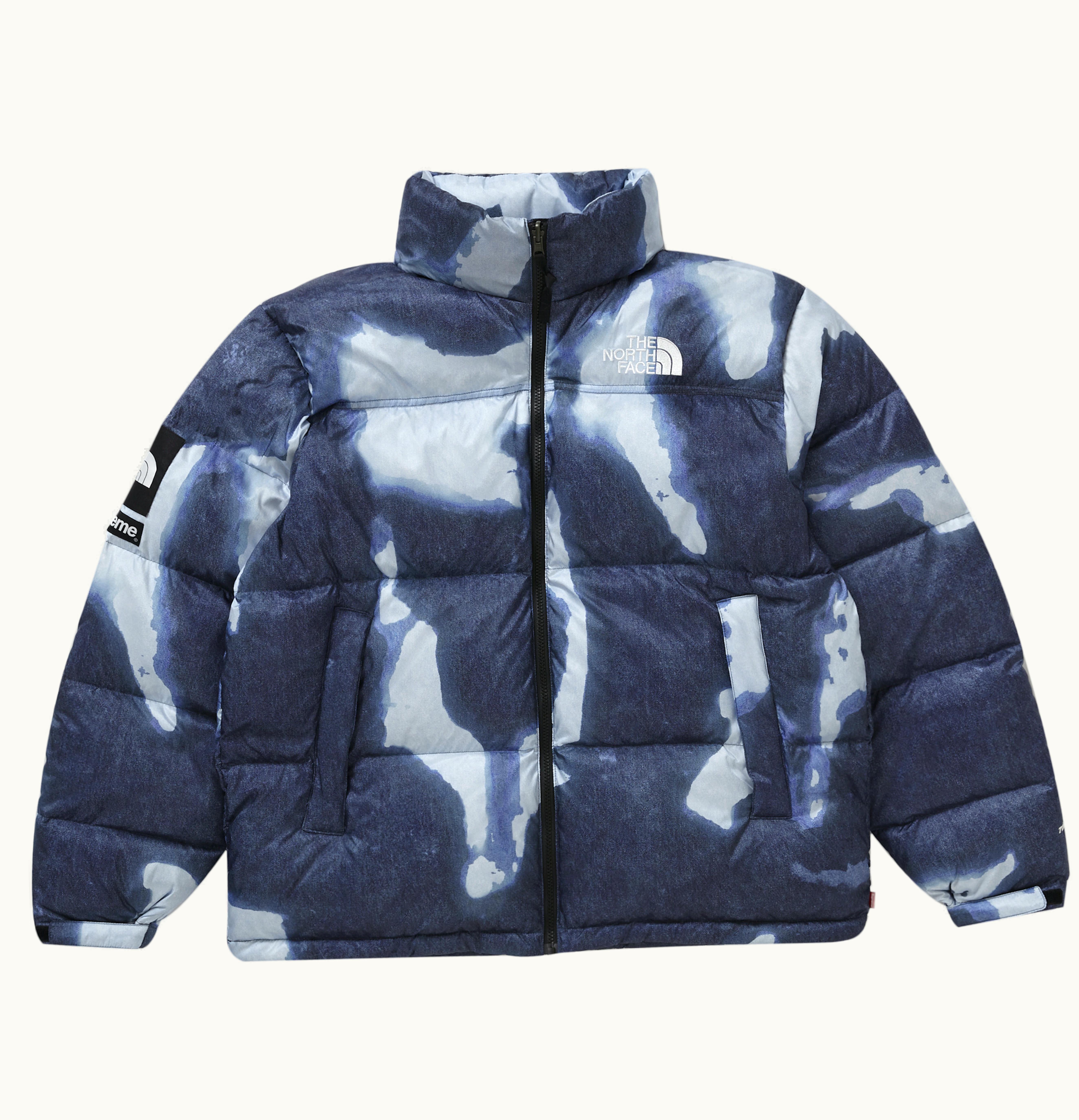 Supreme The North Face Bleached Denim Print Nuptse Jacket Indigo | GLINT