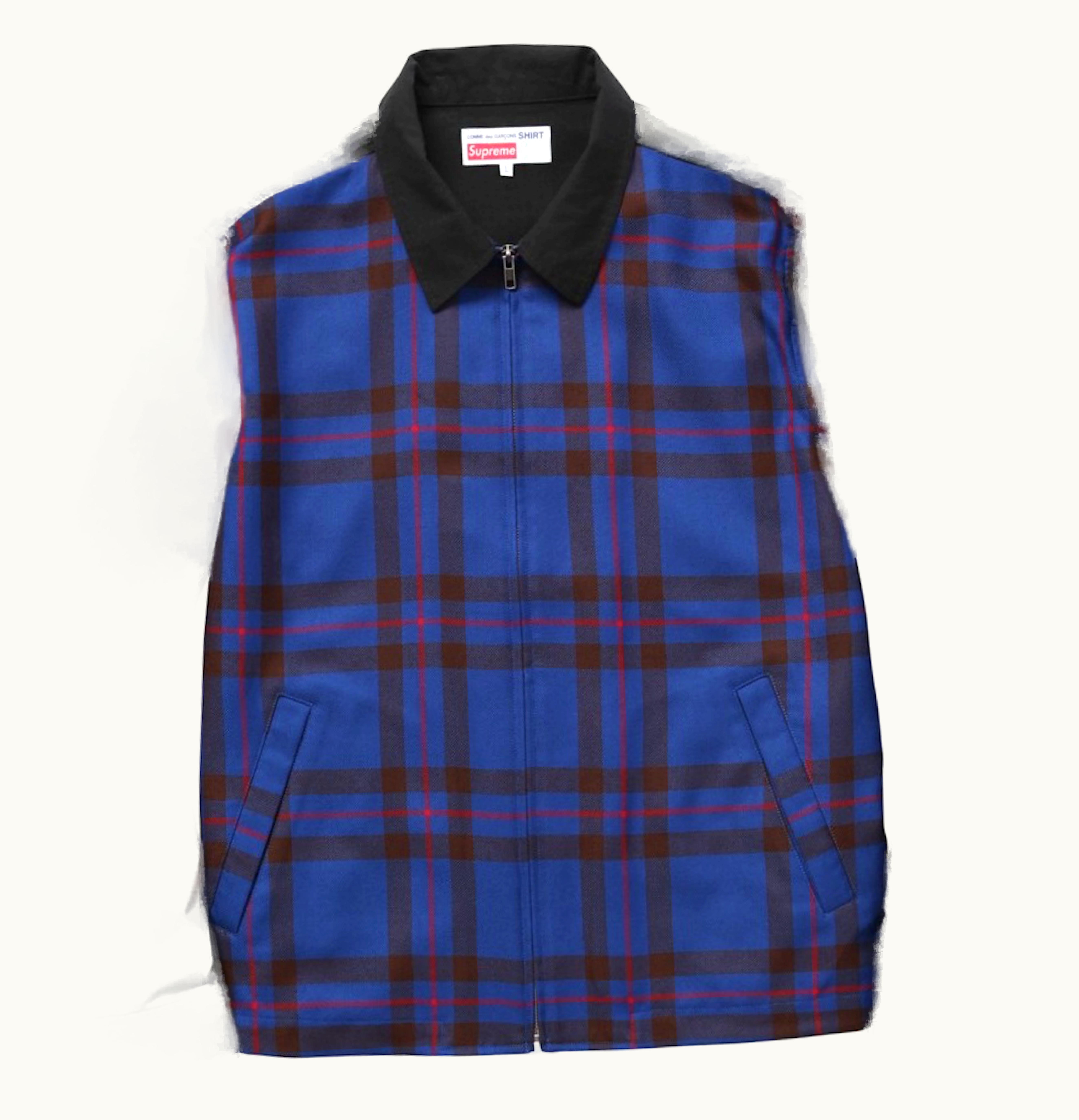 Supreme Comme Des Garcons Work Comme Des Garcons Work is a limited edition collaboration between the two iconic streetwear brands, Supreme and Comme Des Garcons. The product is a classic workwear-inspired jacket constructed from durable cotton drill fabric, and featuring a classic collar, button closures, and a variety of functional pockets. The jacket also features co-branding details throughout, including a Supreme patch sewn onto the chest pocket, and collaborative branding on the interior lining. The jacket comes in two colorways - black and olive green - both of which feature contrasting white stitching details for added visual interest. This jacket is a perfect addition to any streetwear enthusiast's wardrobe, offering a unique blend of timeless workwear design and high-end fashion sensibilities.