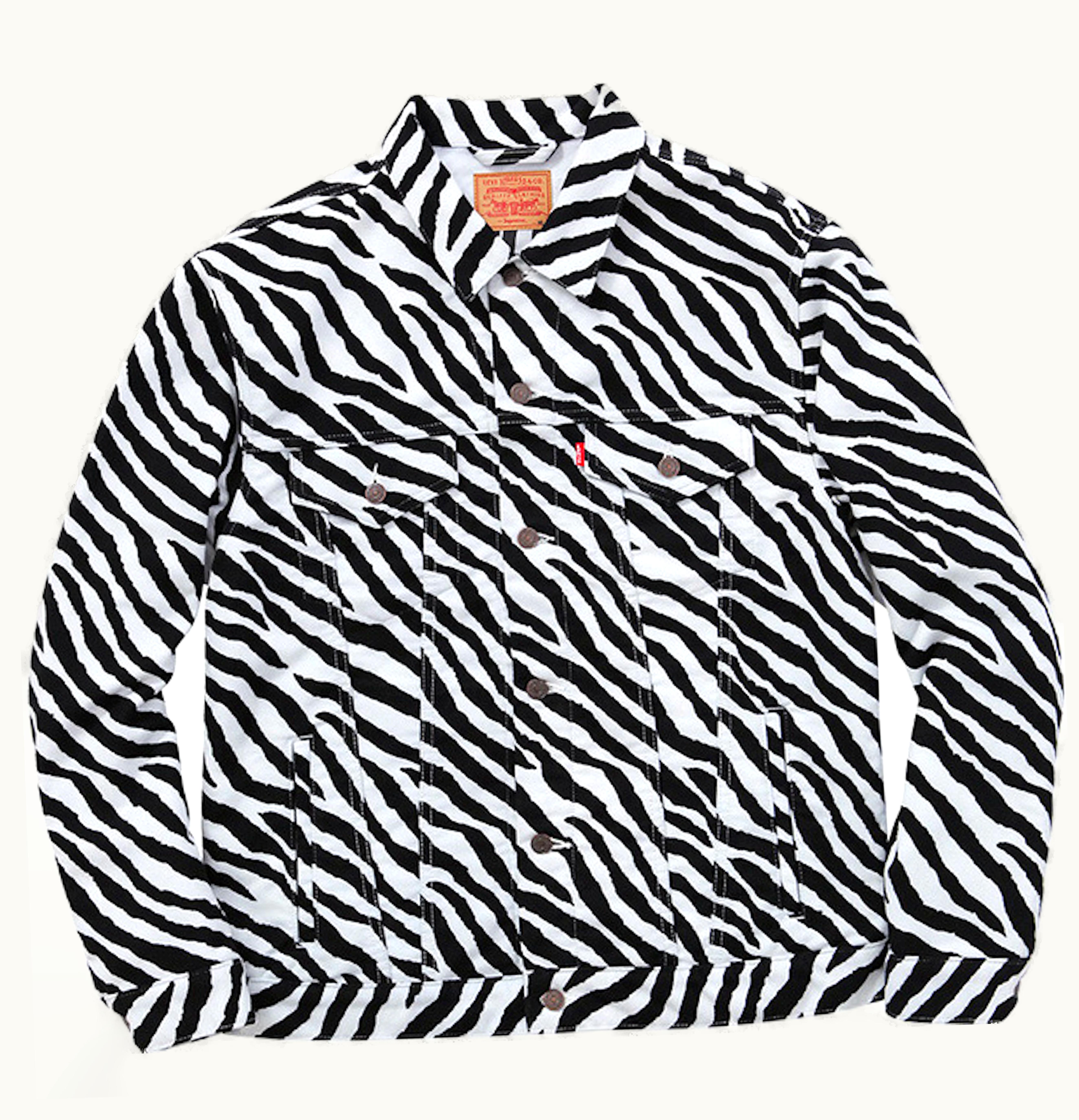 The Supreme Levis Moleskin Trucker is a limited edition jacket that features a classic trucker silhouette and is made from high-quality moleskin fabric. The jacket is a collaboration between two iconic brands, Supreme and Levi's, and features distinctive branding from both labels. The exterior of the jacket is made from a soft yet durable moleskin fabric that has a slight sheen to it, while the interior is lined with a satin-like material for added comfort. The jacket is available in three colorways, including black, olive, and blue, and features branded buttons, chest pockets, and a leather patch on the back hem. Overall, this is a must-have piece for any fan of streetwear or classic American style.
