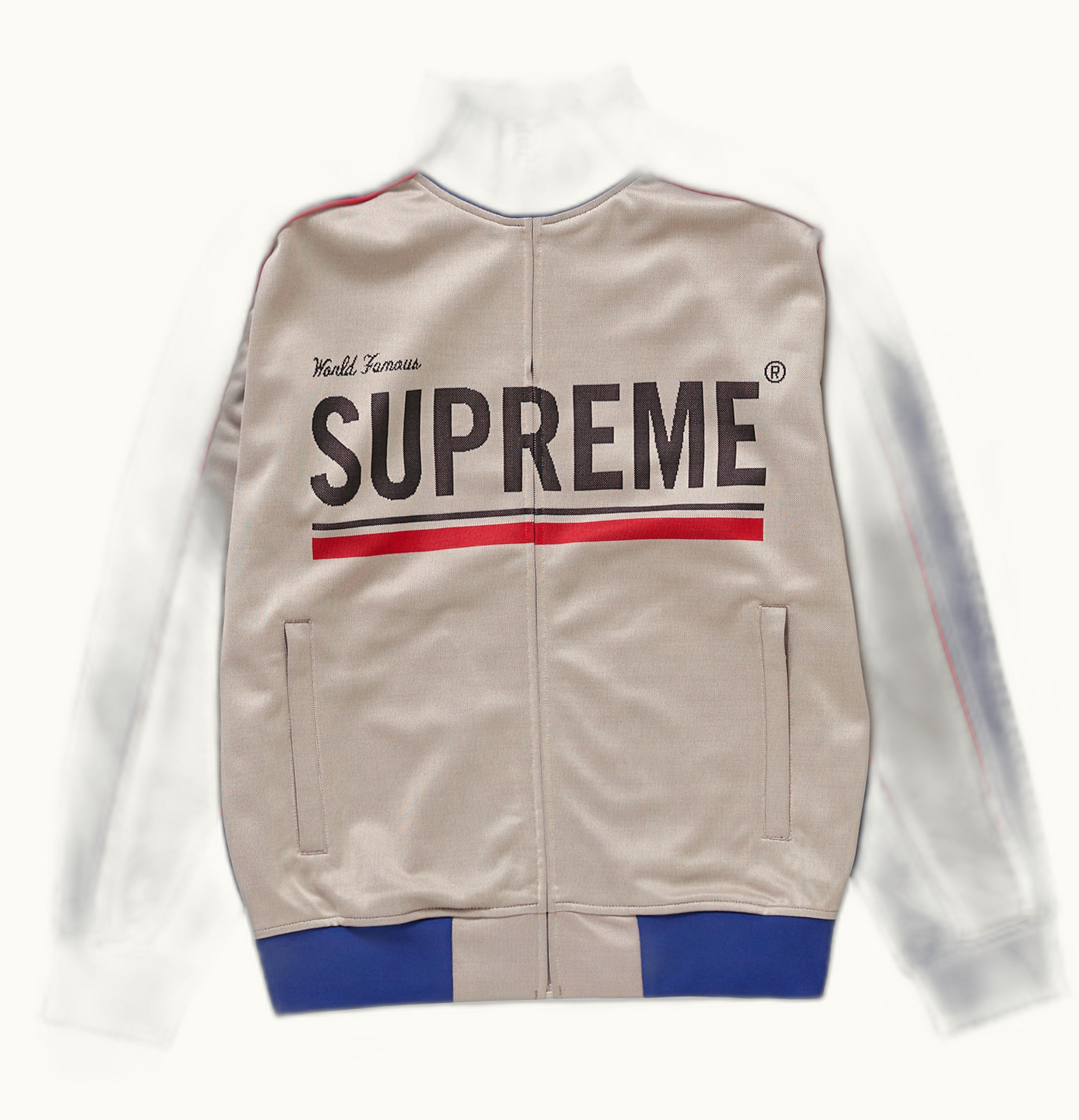 The Supreme World Famous Jacquard Track is a stylish track suit that features a unique jacquard pattern design on both the jacket and pants. The tracksuit has a comfortable and relaxed fit, making it perfect for casual wearing or athletic activities. The jacket comes with a high-collar design, full-zip closure, and two side pockets for added convenience. The pants feature an elasticated waistband and cuffs, along with zippered side pockets. Made with high-quality materials, the Supreme World Famous Jacquard Track is durable, breathable, and comfortable, allowing for ease of movement and versatility. The unique jacquard pattern and iconic Supreme branding on both the jacket and pants make this tracksuit stylish and fashionable. Whether you are lounging at home or hitting the gym, the Supreme World Famous Jacquard Track is a perfect choice for anyone looking for comfort, style, and quality.