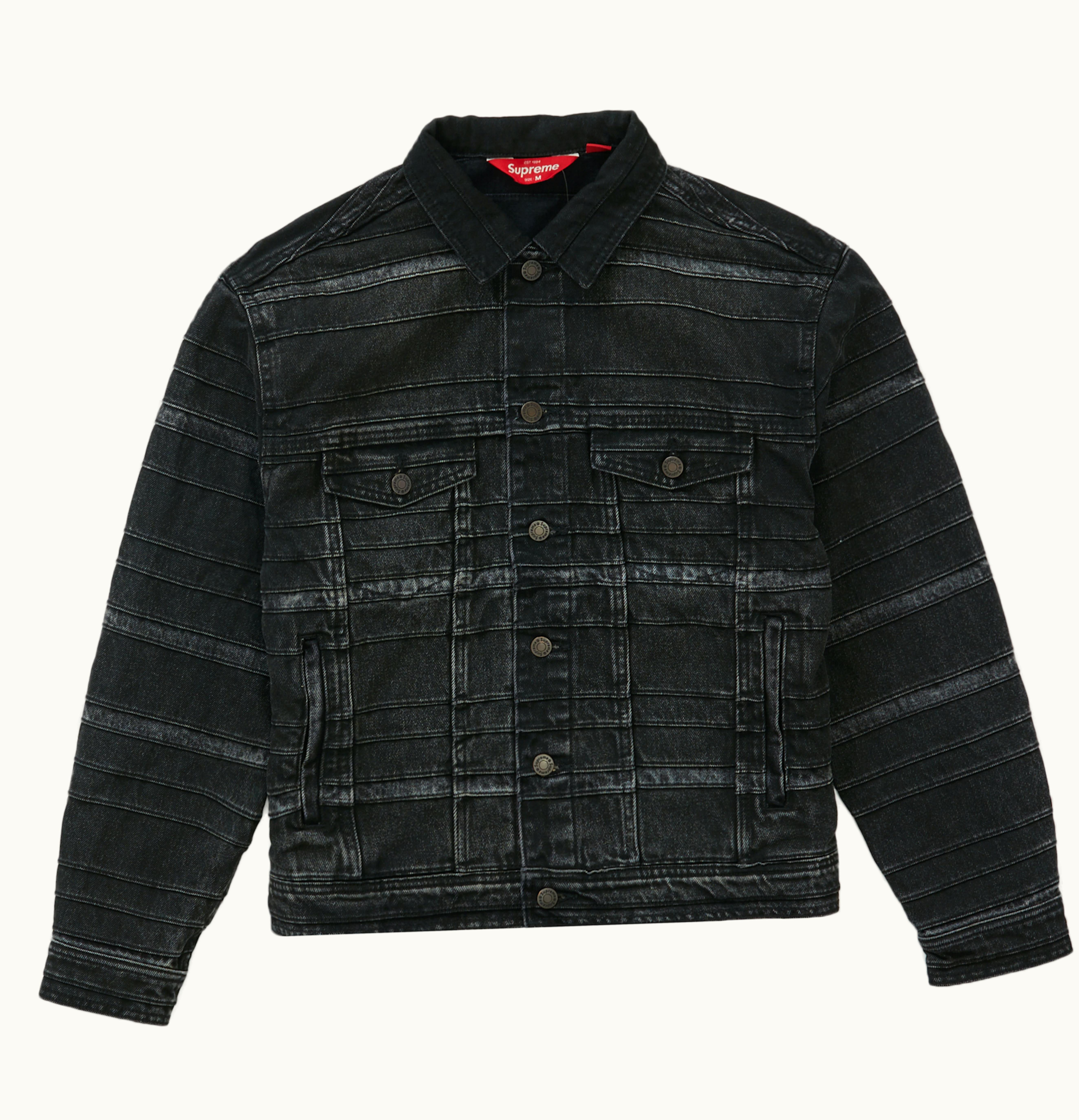 The Supreme Layered Denim Trucker is a stylish and contemporary take on the classic denim jacket. Made from durable denim fabric, this piece is designed with layered detailing for a unique and edgy look. The jacket features a button-down front, two chest pockets, and two side pockets, providing ample storage space for your everyday essentials. With its versatile and timeless design, this denim trucker jacket can be styled with a range of outfits, making it a must-have addition to any fashion-forward wardrobe.