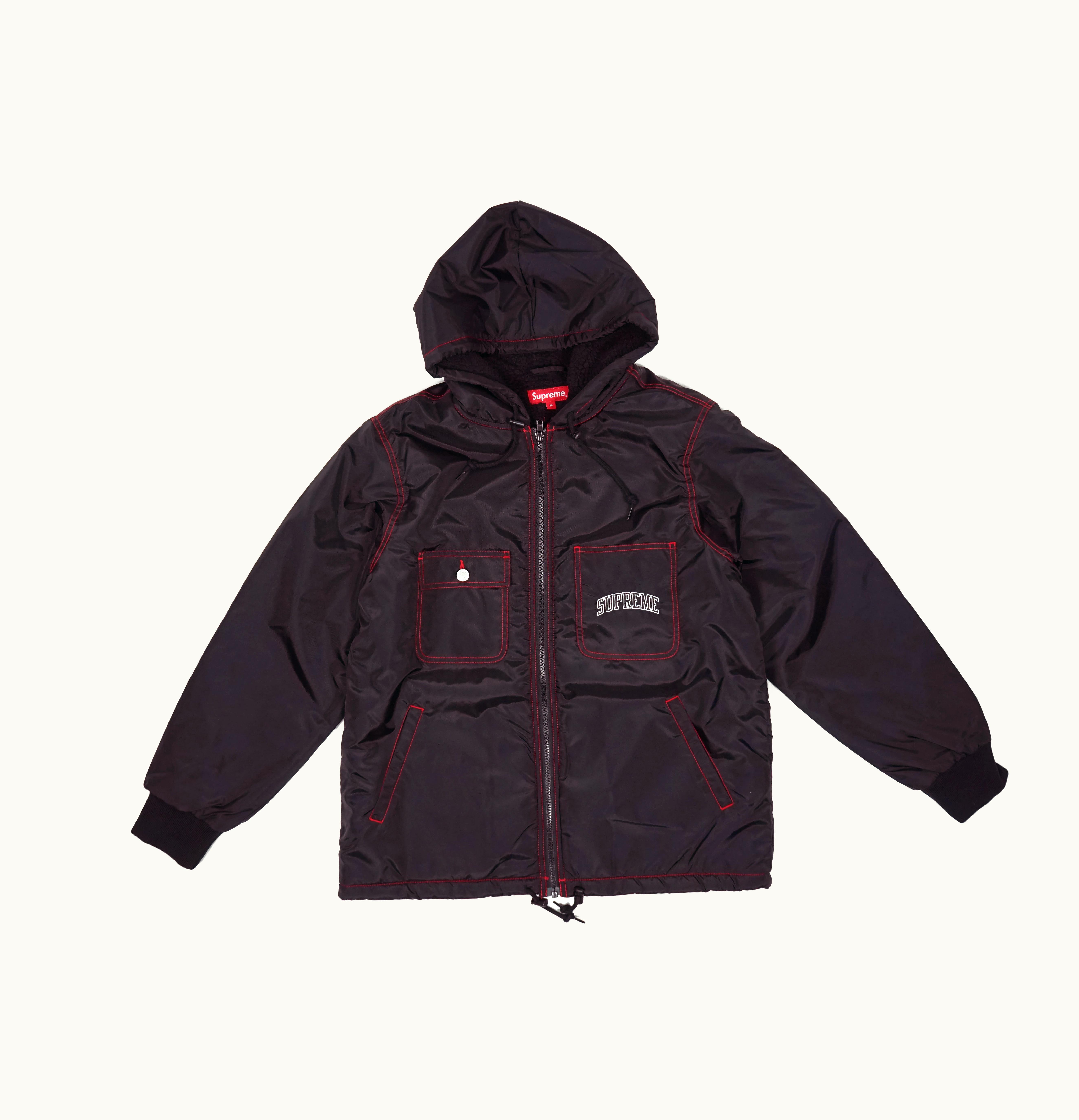 The Supreme Sherpa Lined Nylon Zip Up is a premium quality winter jacket designed to keep you warm and comfortable during the cold weather. It is made of durable nylon material on the outside and fully lined with soft and cozy sherpa lining on the inside, providing ultimate warmth and insulation. The jacket features a full-length front zipper and a high collar that can be zipped up to protect your neck and face from the cold wind. It also has two side pockets with zip closures where you can keep your hands warm or carry small essentials. The elasticated cuffs and waistband ensure a snug and comfortable fit, while the lightweight and durable construction make this jacket perfect for everyday wear. It is available in multiple sizes and colors, making it a versatile and functional addition to your winter wardrobe. Whether you're heading out for a casual evening walk, running errands, or simply lounging at home, the Supreme Sherpa Lined Nylon Zip Up is sure to keep you warm and stylish.