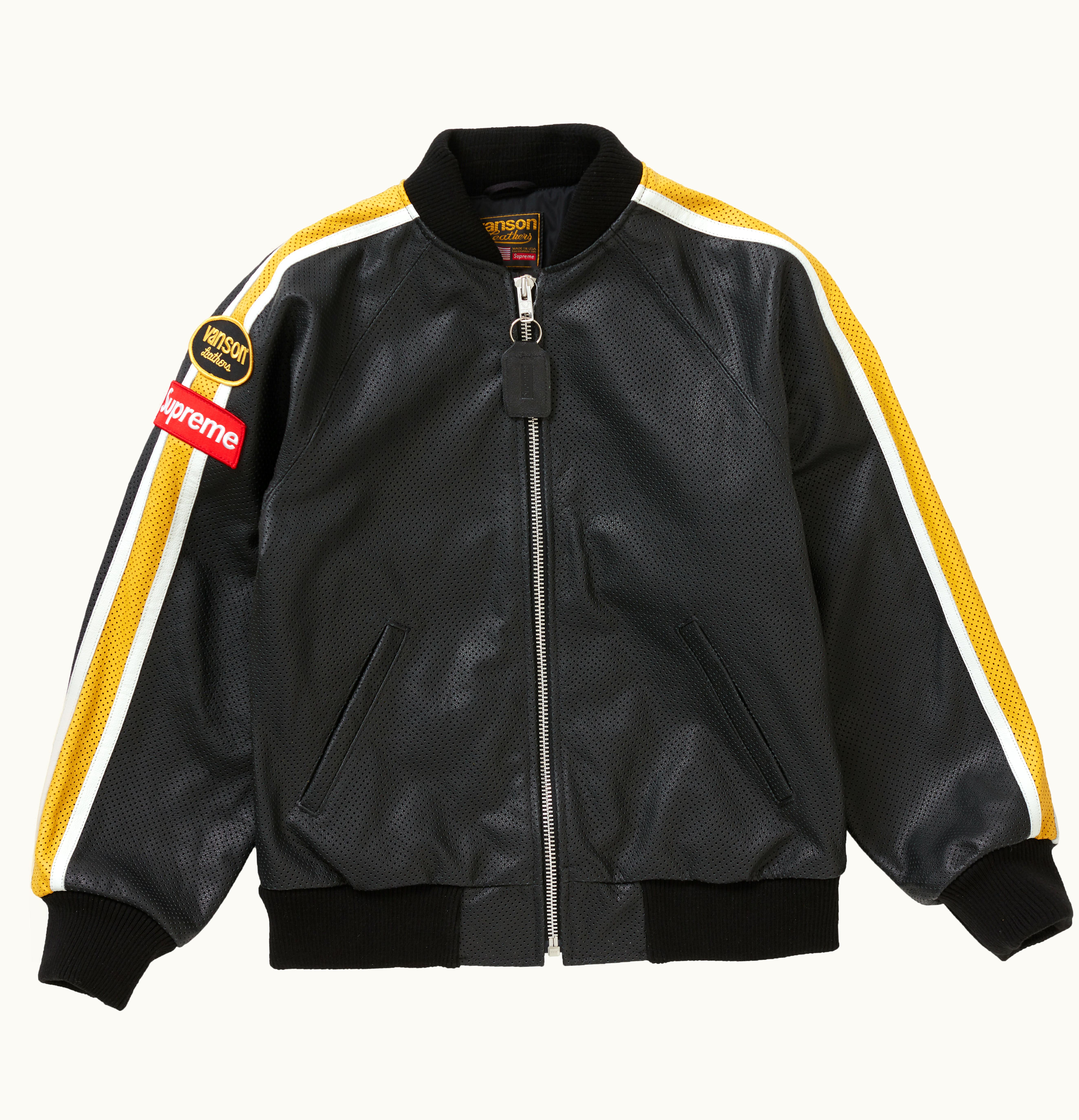 Supreme Vanson Leathers Perforated is a premium quality leather jacket designed to offer a blend of style, comfort, and performance. The jacket is made from high-quality perforated cowhide leather that is not only soft and supple but also offers superior durability and protection to the rider. The perforations on the leather provide enhanced breathability, making it suitable for hot and humid riding conditions. The jacket features a classic design with a full-zip front, adjustable cuffs and waist, and a snap-tab collar. It comes with two zippered hand pockets and a chest pocket that provide ample storage for your essentials. The jacket has a slim fit that is tailored to provide a flattering silhouette without compromising on comfort. The Supreme Vanson Leathers Perforated jacket is lined with a breathable mesh material that wicks away sweat, keeping you dry and comfortable during long rides. It also features CE-approved armor on the elbows and shoulders, providing added protection in case of a crash. Overall, the Supreme Vanson Leathers Perforated jacket is a top-of-the-line leather jacket that offers exceptional style, comfort, and protection. Whether you ride a motorcycle, a scooter or just looking for a stylish jacket to wear on the streets, this jacket is the perfect choice for you.