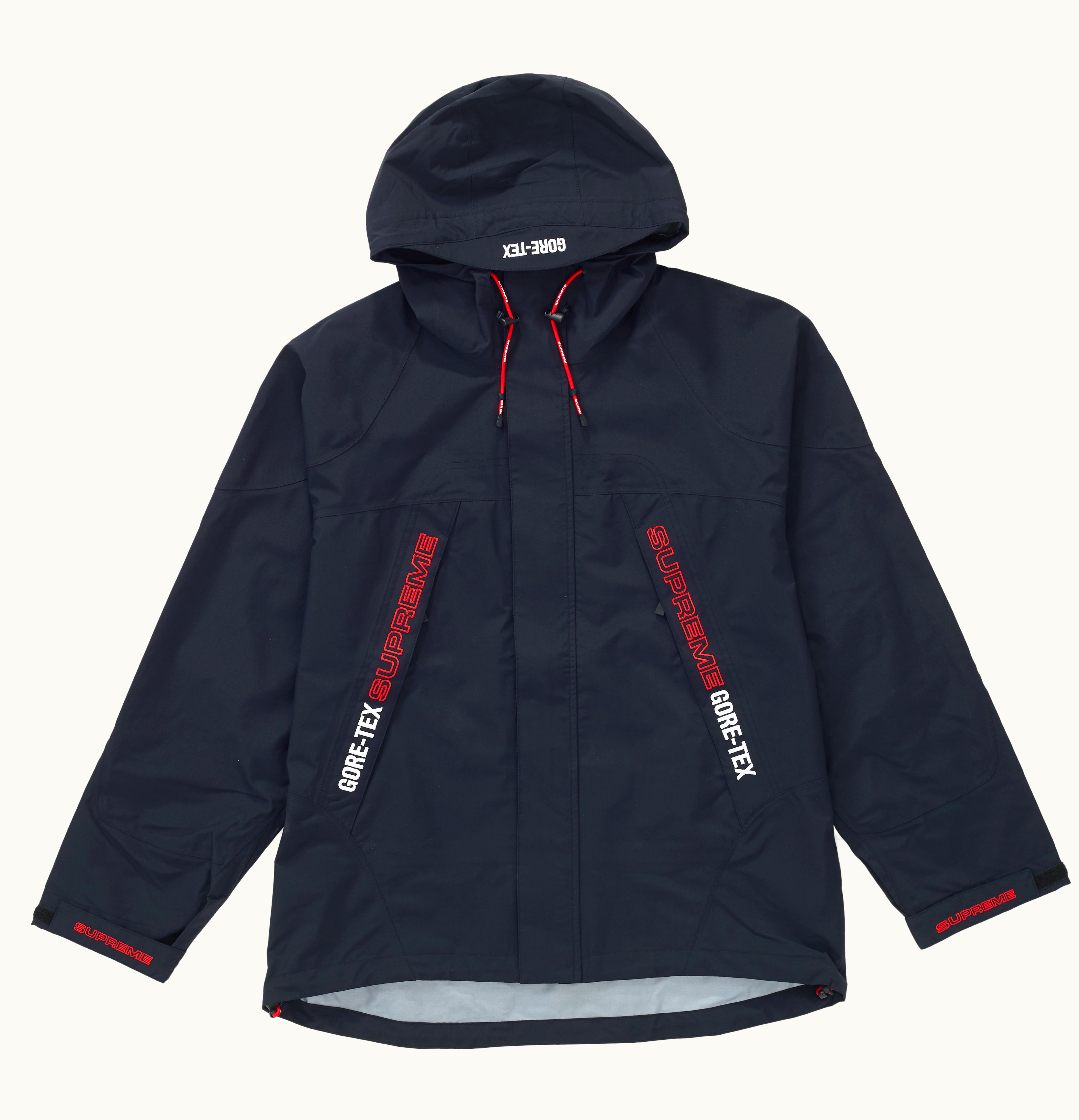The Supreme GORE TEX Taped Seam jacket is a premium outdoor essential that offers durability and protection from harsh weather conditions. The jacket features taped seams for added waterproofing, ensuring that moisture is kept out. This jacket is made from GORE TEX fabric, which offers reliable, breathable protection from strong winds and heavy rain. The jacket is designed with a full-length zipper closure, adjustable cuffs, and a drawstring hood that offers comprehensive coverage from wet weather. It comes in a sleek black colorway, with Supreme branding on the chest and back, making it an excellent choice for anyone looking for a fashionable, functional, and high-performance jacket. Whether you are going on a hiking trip, camping expedition or just looking for a reliable rain jacket, the Supreme GORE TEX Taped Seam has got you covered.