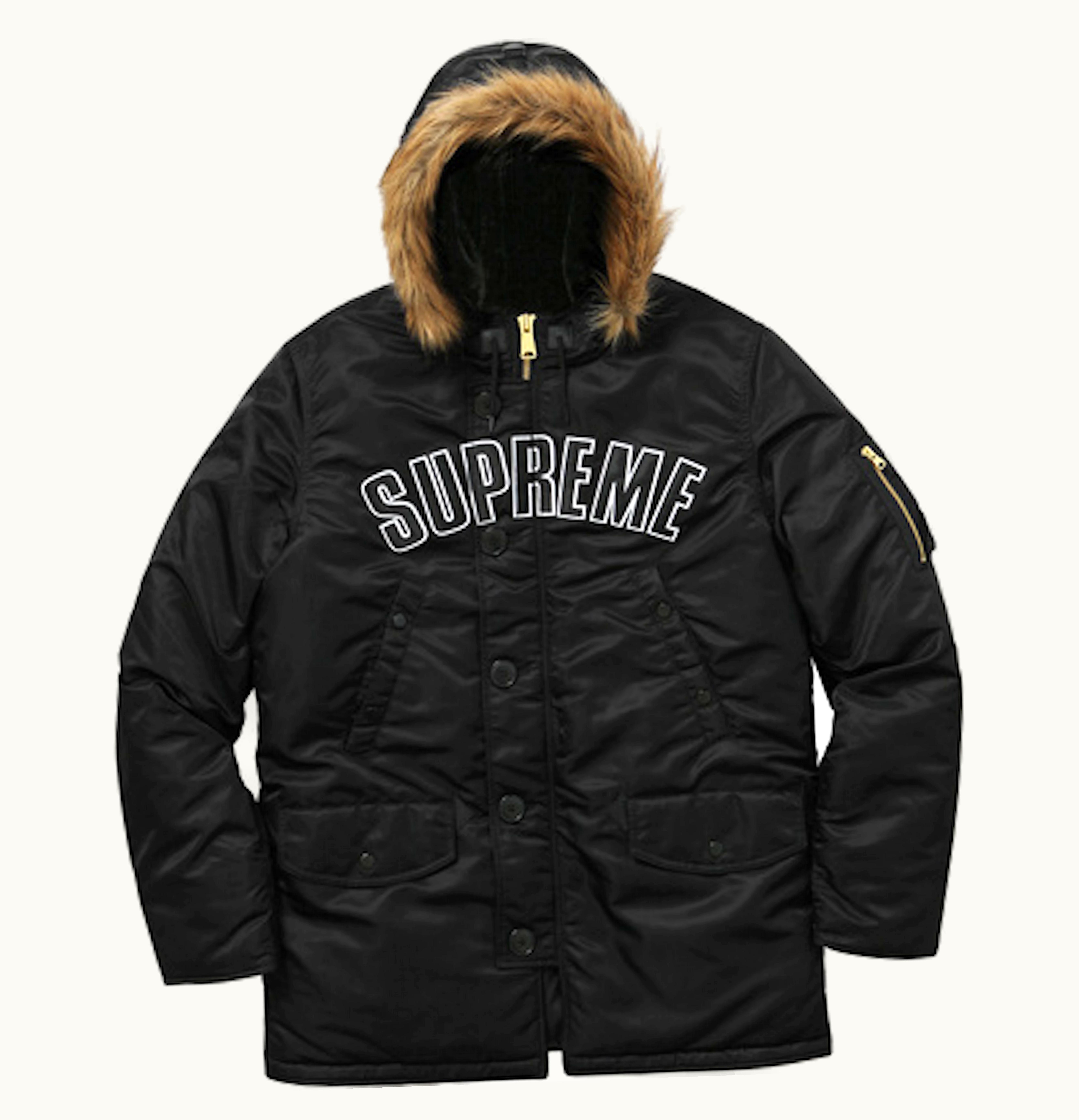 Supreme Arc Logo N3B Arc Logo N3B is a classic winter parka that features a durable and water-resistant outer shell made from heavy-duty nylon. The parka is designed to provide maximum warmth and protection against cold weather with its soft and cozy quilted lining and insulating fill. The parka features an adjustable hood with detachable fur trim and a full front zip and button closure for added coverage. It also comes with plenty of pockets for storing essentials, including two handwarmer pockets, two front flap pockets, and a zippered sleeve pocket. The standout feature of the Supreme Arc Logo N3B Arc Logo N3B is the iconic Arc Logo patch on the sleeve, ensuring that the wearer looks stylish and on-trend all winter long.