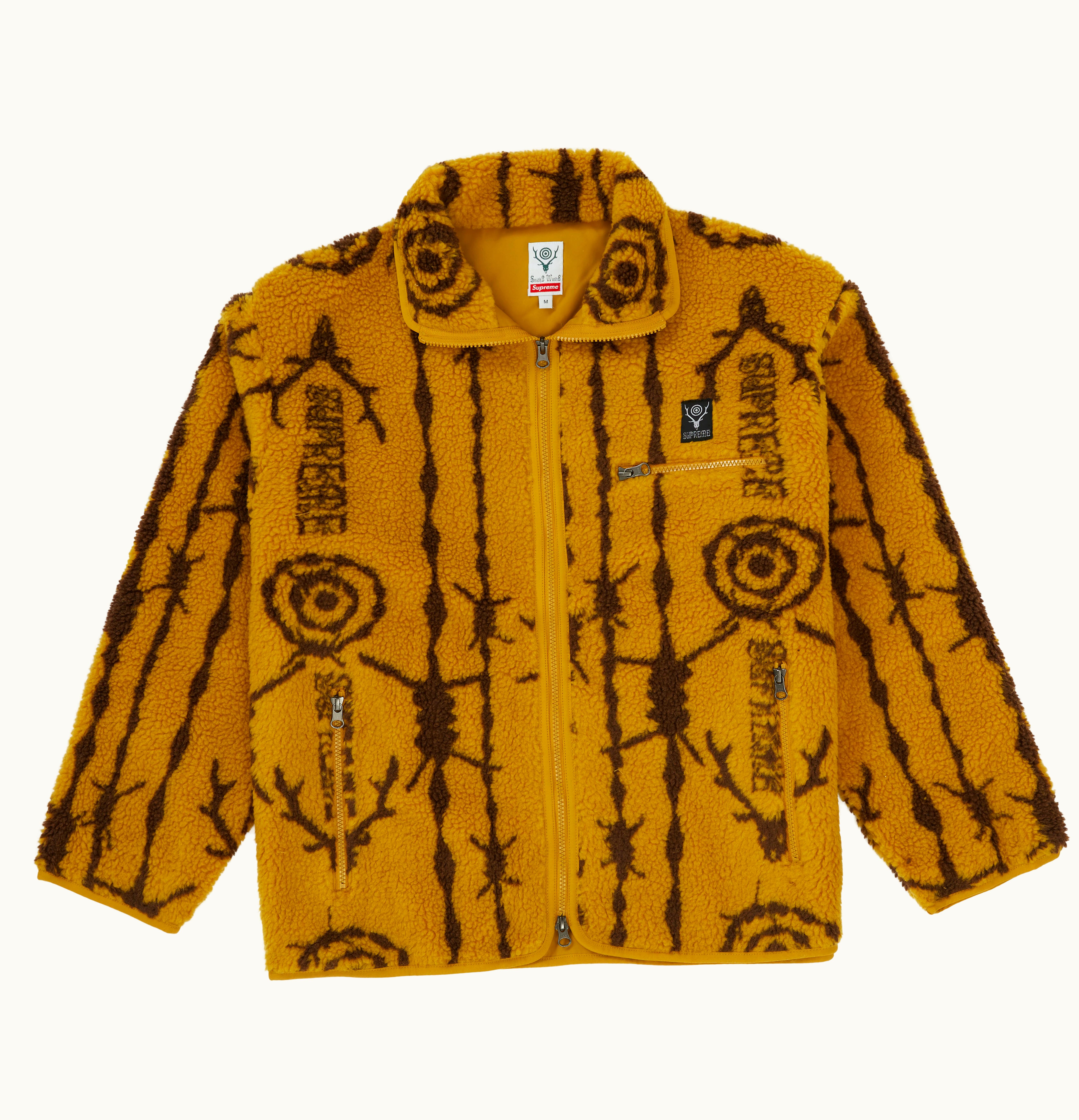 The Supreme SOUTH2 WEST8 Fleece is a high-quality and stylish fleece jacket that is ideal for any outdoor activities. This fleece is made from a soft and warm material that helps to keep you comfortable and cozy in cold weather. It features a classic design with a full zip front closure, a high collared neckline, and ribbed cuffs and hemline for a snug fit. The jacket also has two front pockets that provide ample space for storing small essentials. The iconic Supreme logo is embroidered on the chest, adding a touch of style to the overall look. With its versatile and functional design, the Supreme SOUTH2 WEST8 Fleece is a must-have addition to any outdoor wardrobe.