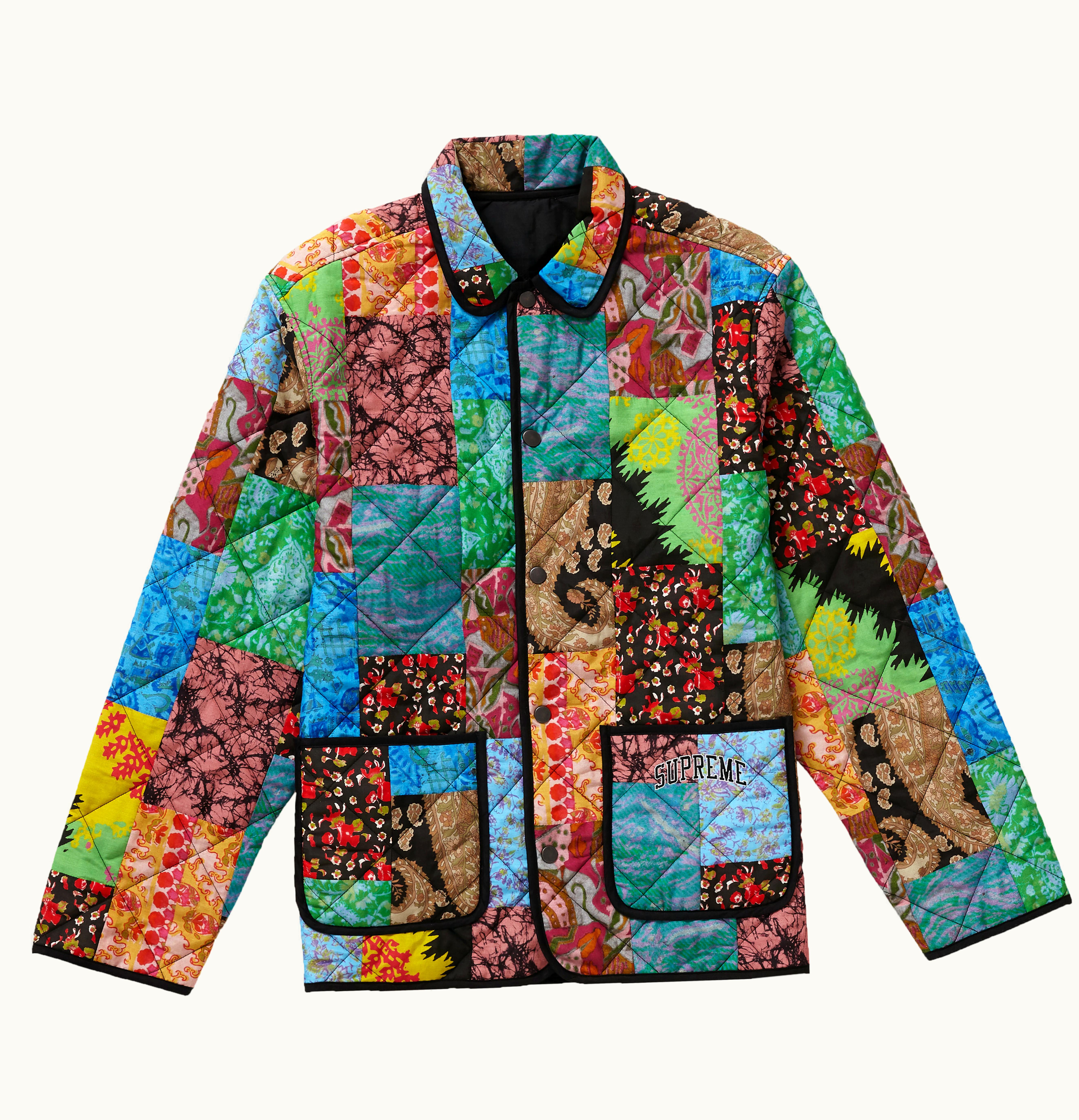 The Supreme Reversible Patchwork consists of a unique patchwork design, incorporating a variety of color schemes and patterns that create a visually striking appearance. This reversible piece includes two sides, both with varying patchwork designs and colors, providing versatility and options. The product is made with high-quality materials, ensuring both durability and comfort. The product is suitable for a variety of uses such as a throw, bedspread, or even as an accent piece in a room. The patchwork design creates a rugged and modern aesthetic that is sure to capture the attention of any onlooker. This product is an excellent addition to any home, adding a touch of character and unique style.