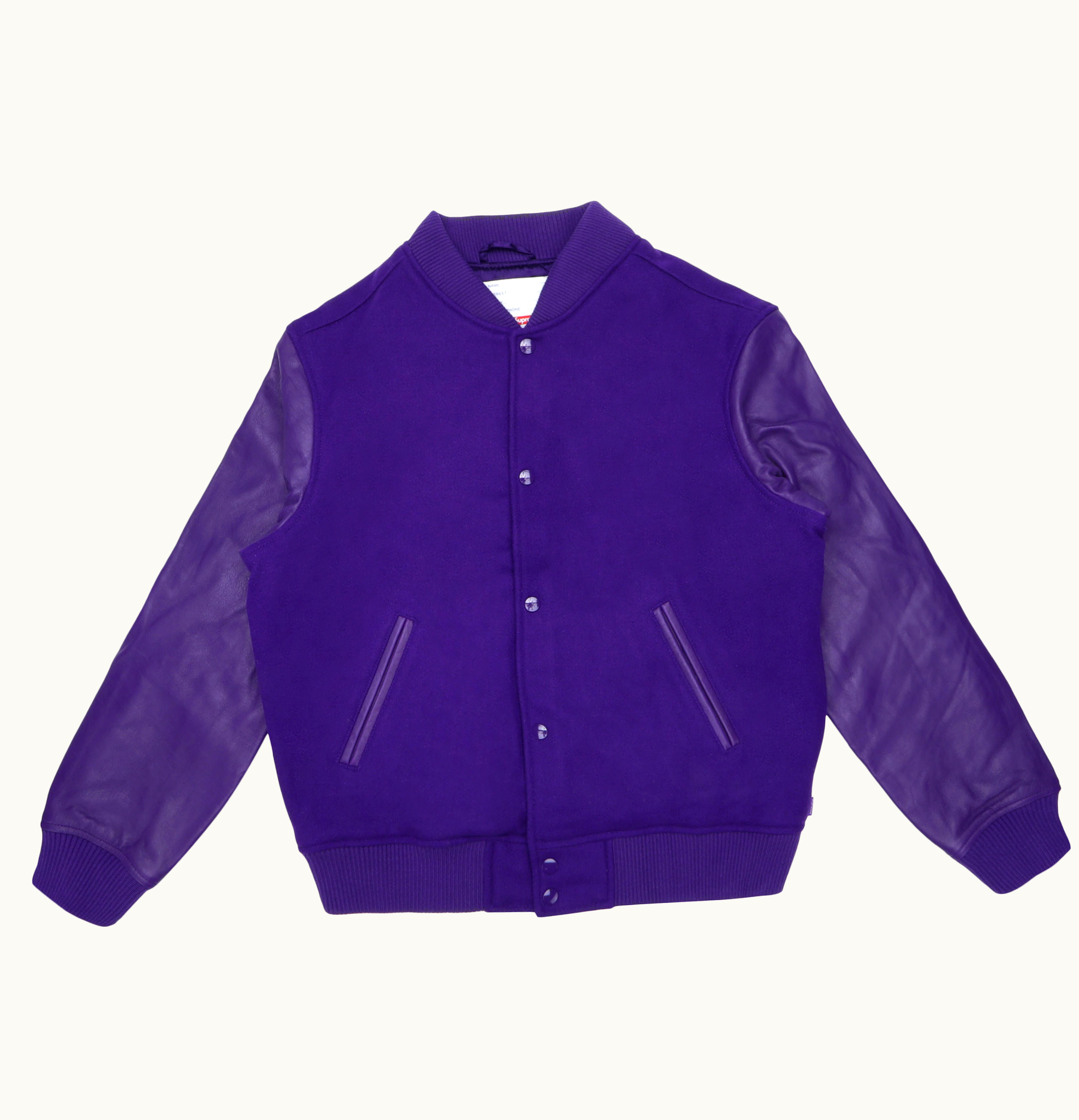 The Supreme Motion Logo Varsity is a high-quality emblematic jacket from the trendy streetwear brand, Supreme. The jacket is crafted from premium quality wool fabric with leather accents, making it a durable and stylish garment that is perfect for chilly weather. The jacket features a classic varsity design with ribbed cuffs, collar, and waistband, ensuring maximum comfort and flexibility when wearing it. The jacket is adorned with the Supreme Motion Logo on the chest and back, which is a bold and eye-catching design that perfectly complements the varsity style of the garment. The Motion Logo features Supreme's iconic italicized brand name with three arrows pointing upwards below it, representing forward movement and progress. Available in a range of colorways, the Supreme Motion Logo Varsity is a versatile jacket that can be paired with a wide range of clothing options, from jeans and t-shirts to joggers and sneakers. It is a statement piece that will elevate any outfit, making it a must-have for any streetwear enthusiast or fashion-conscious individual.