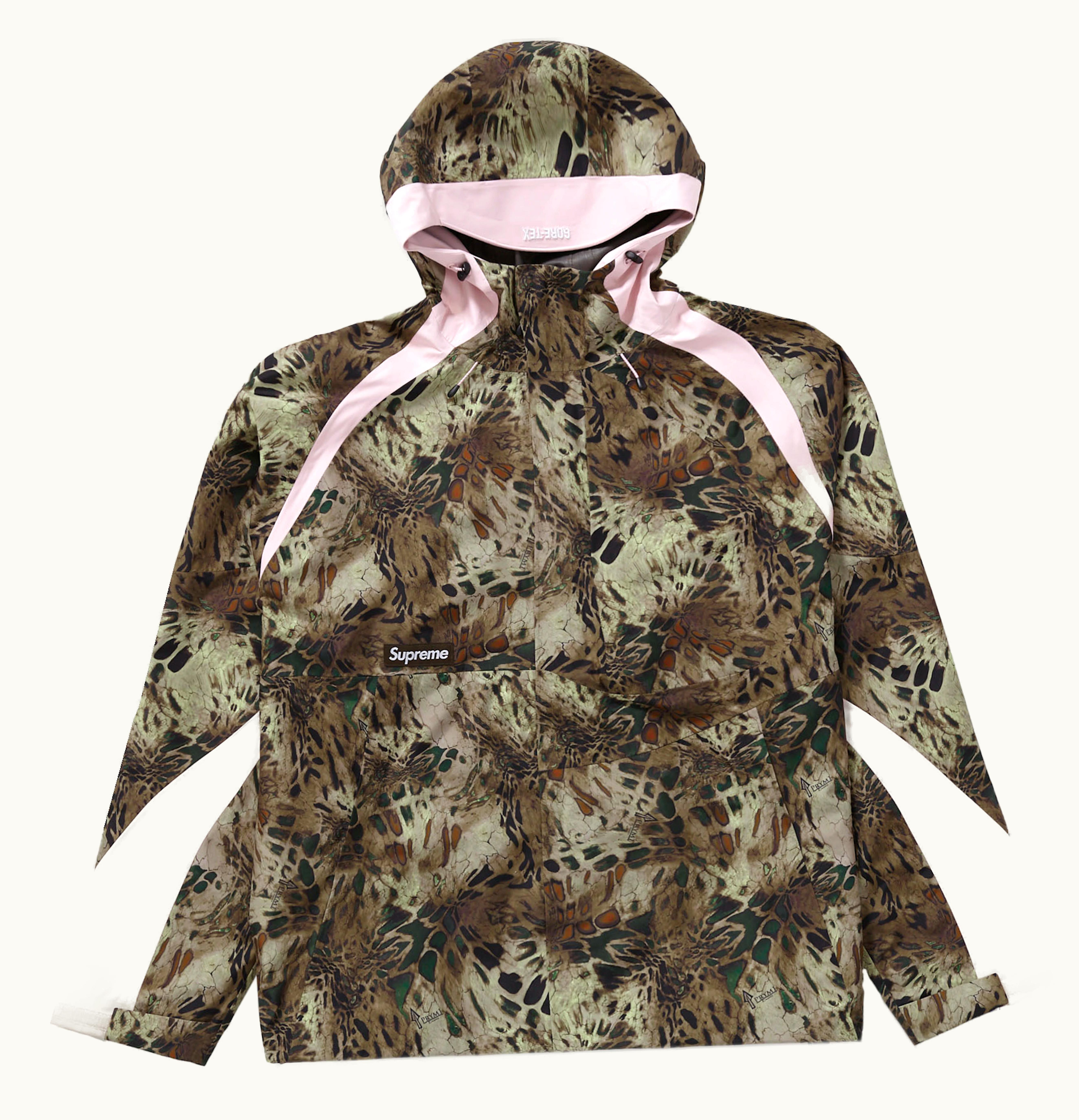The Supreme GORE-TEX PACLITE is a high-performance jacket made from GORE-TEX PACLITE fabric. This fabric is ultra-lightweight and breathable, making it ideal for outdoor activities in inclement weather conditions. The jacket is also 100% waterproof, ensuring you stay dry in even the heaviest of downpours. The Supreme GORE-TEX PACLITE features a sleek and modern design, with a minimalist silhouette and subtle branding. It has a front zipper closure, adjustable hood, and elastic cuffs for a comfortable and secure fit. The jacket also has two front pockets with zipper closures, providing ample storage space for your essentials. One of the standout features of the Supreme GORE-TEX PACLITE is its durability. The jacket is engineered to withstand the toughest outdoor conditions, making it an ideal choice for hikers, backpackers, and other outdoor enthusiasts. It also comes with a lifetime warranty, ensuring you get the most out of your investment. Overall, the Supreme GORE-TEX PACLITE is a premium-quality jacket that blends style, comfort, and performance. Whether you're hiking in the mountains or walking around town on a rainy day, this jacket will keep you dry and comfortable.